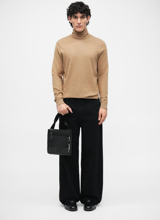 Tracolla Just Cavalli "Maxi Logo Print" in pelle granulosa uomo