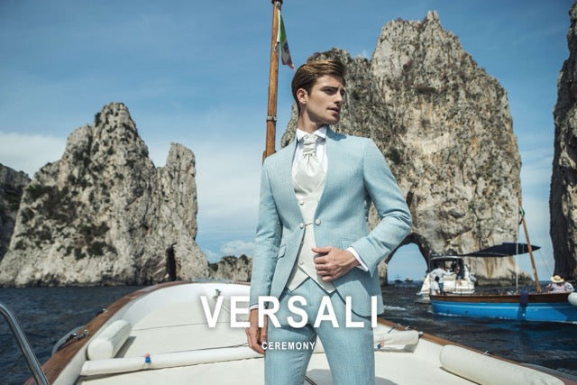 La nuova collezione di abiti da cerimonia uomo 2025 di Andrea Versali è ispirata alla maestosità e all’eleganza della città di Capri.