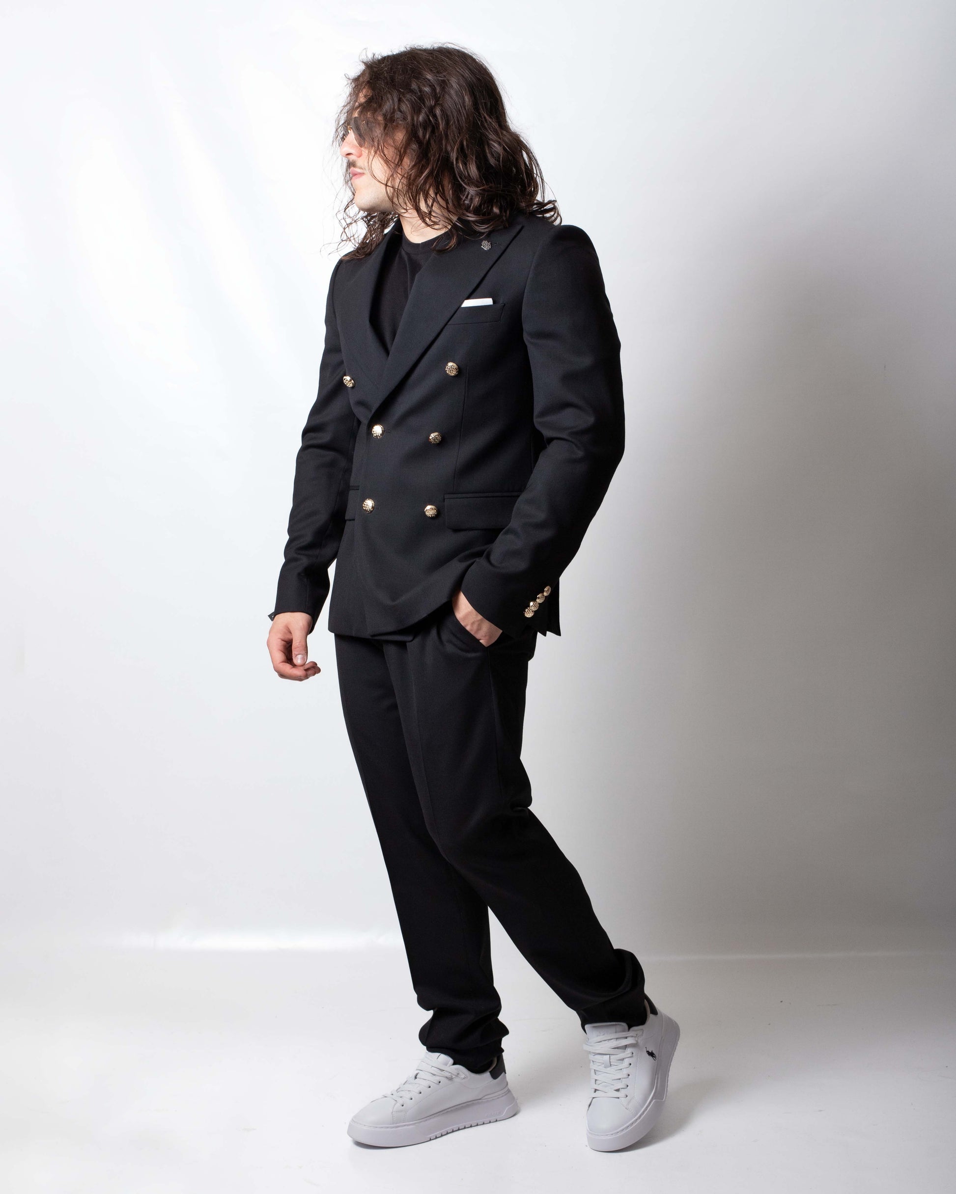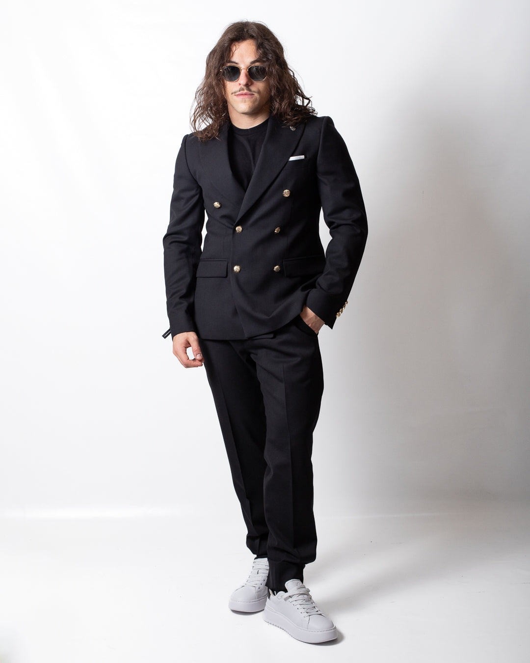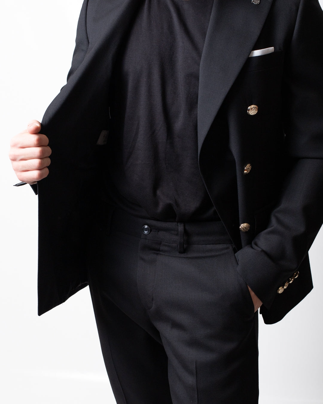 Abito Daniele Alessandrini nero, unica variante. Texture in cashmere,