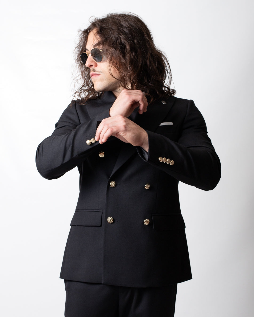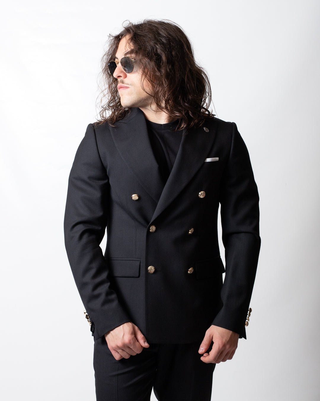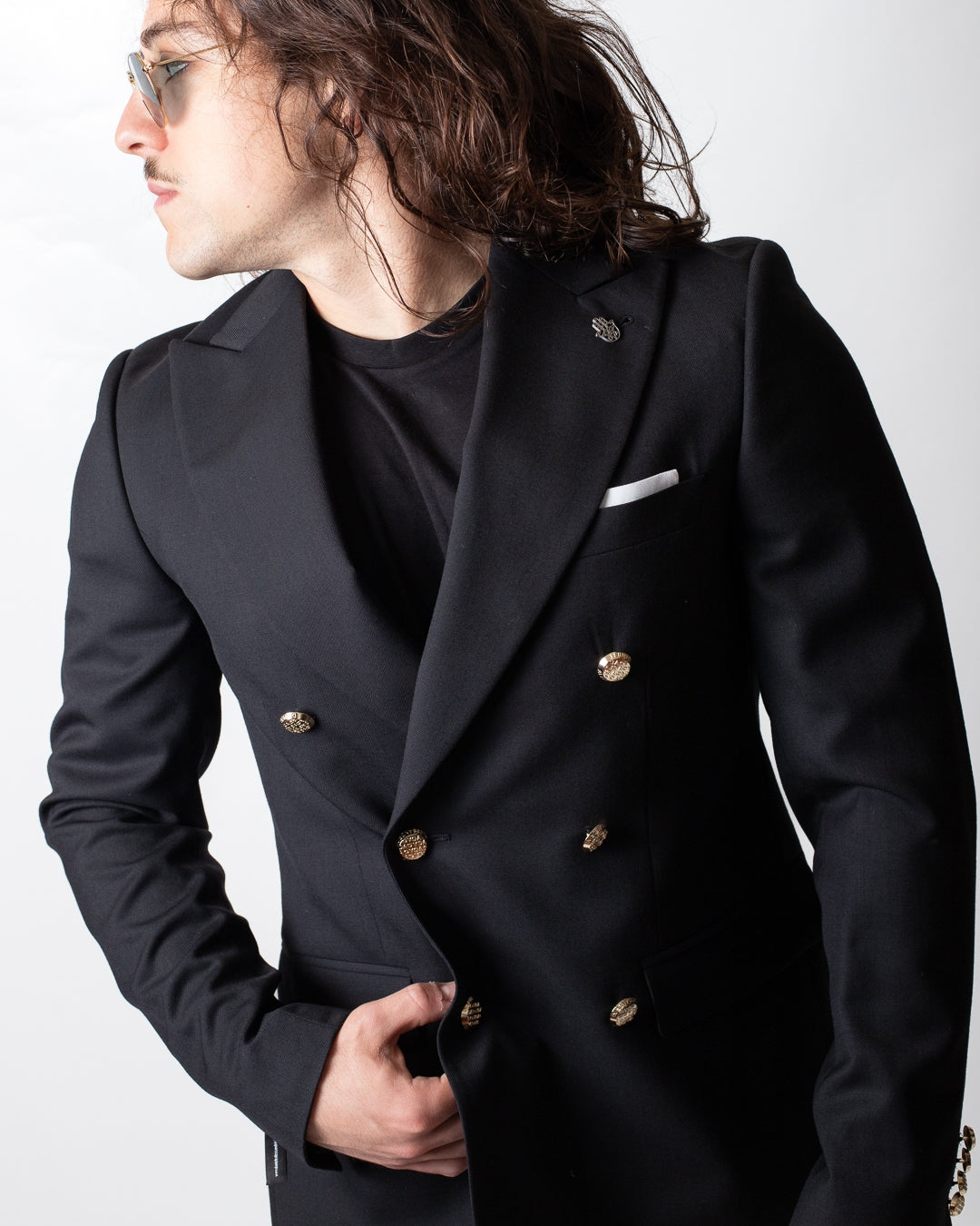 Abito Daniele Alessandrini nero, unica variante. Texture in cashmere,