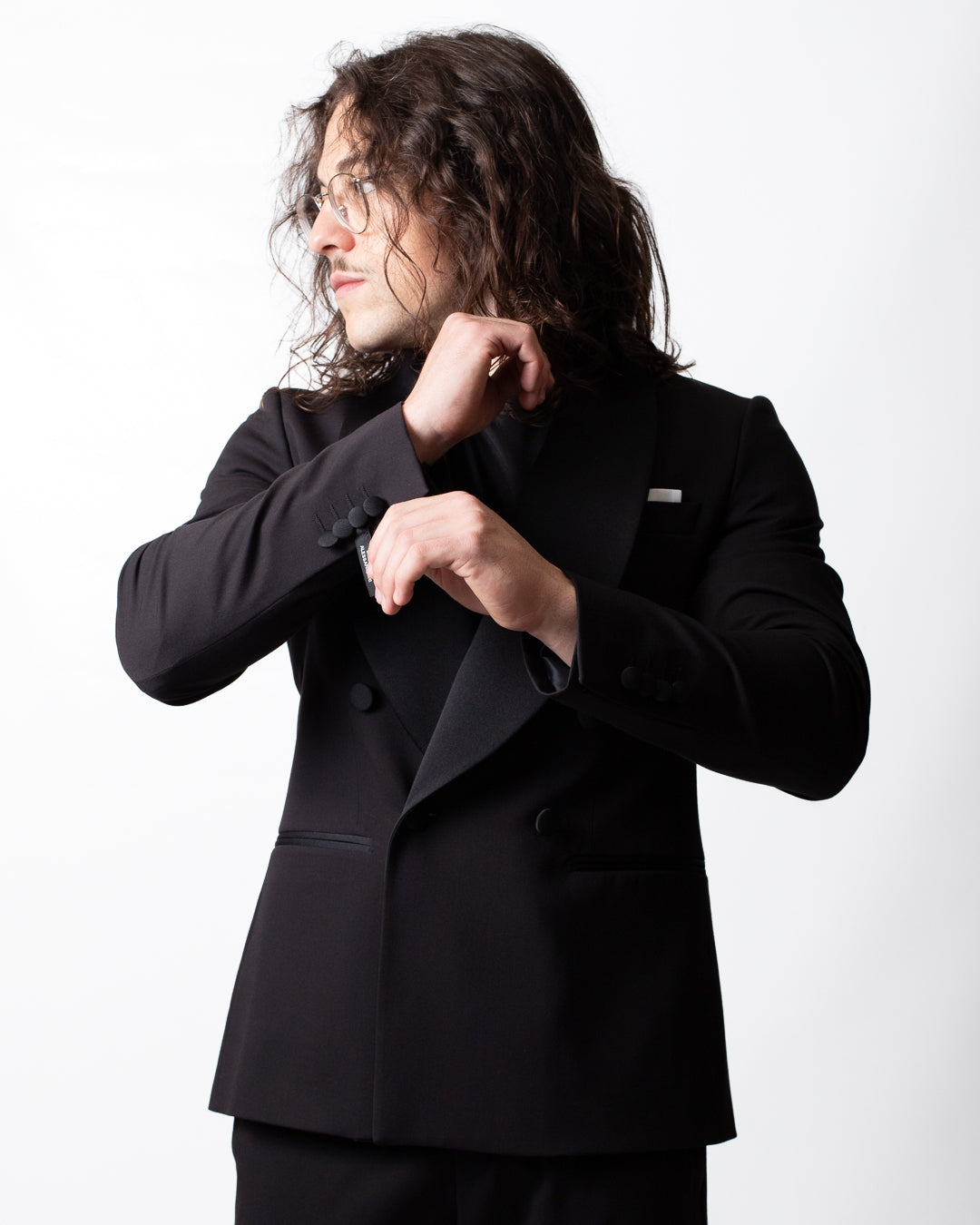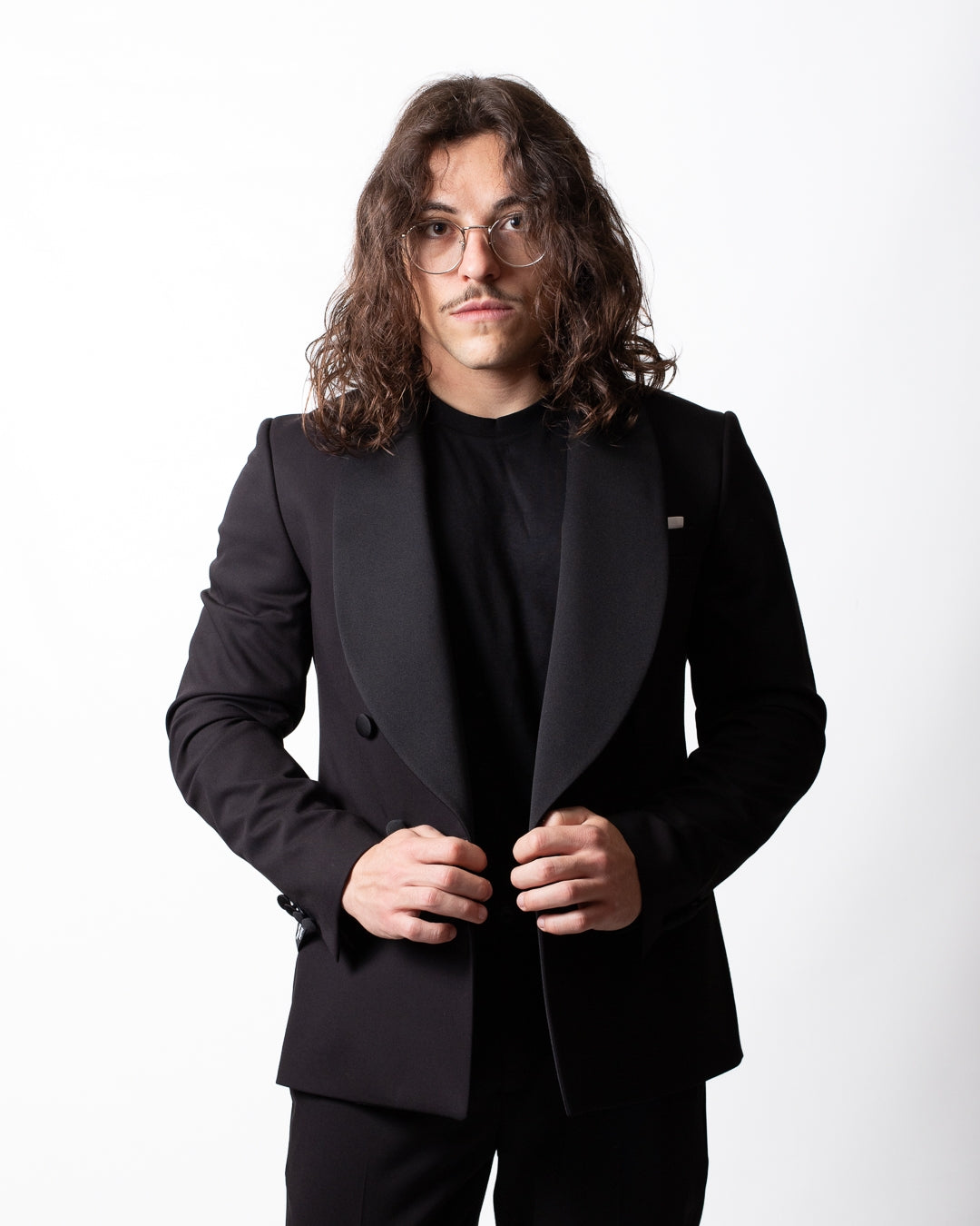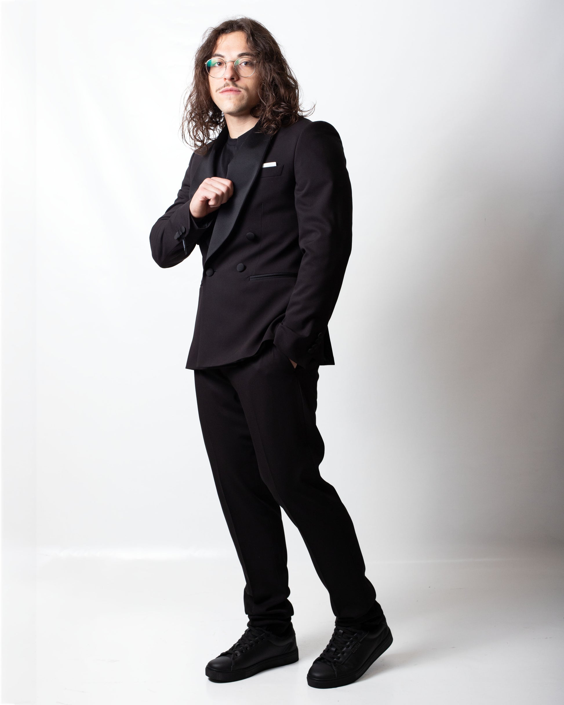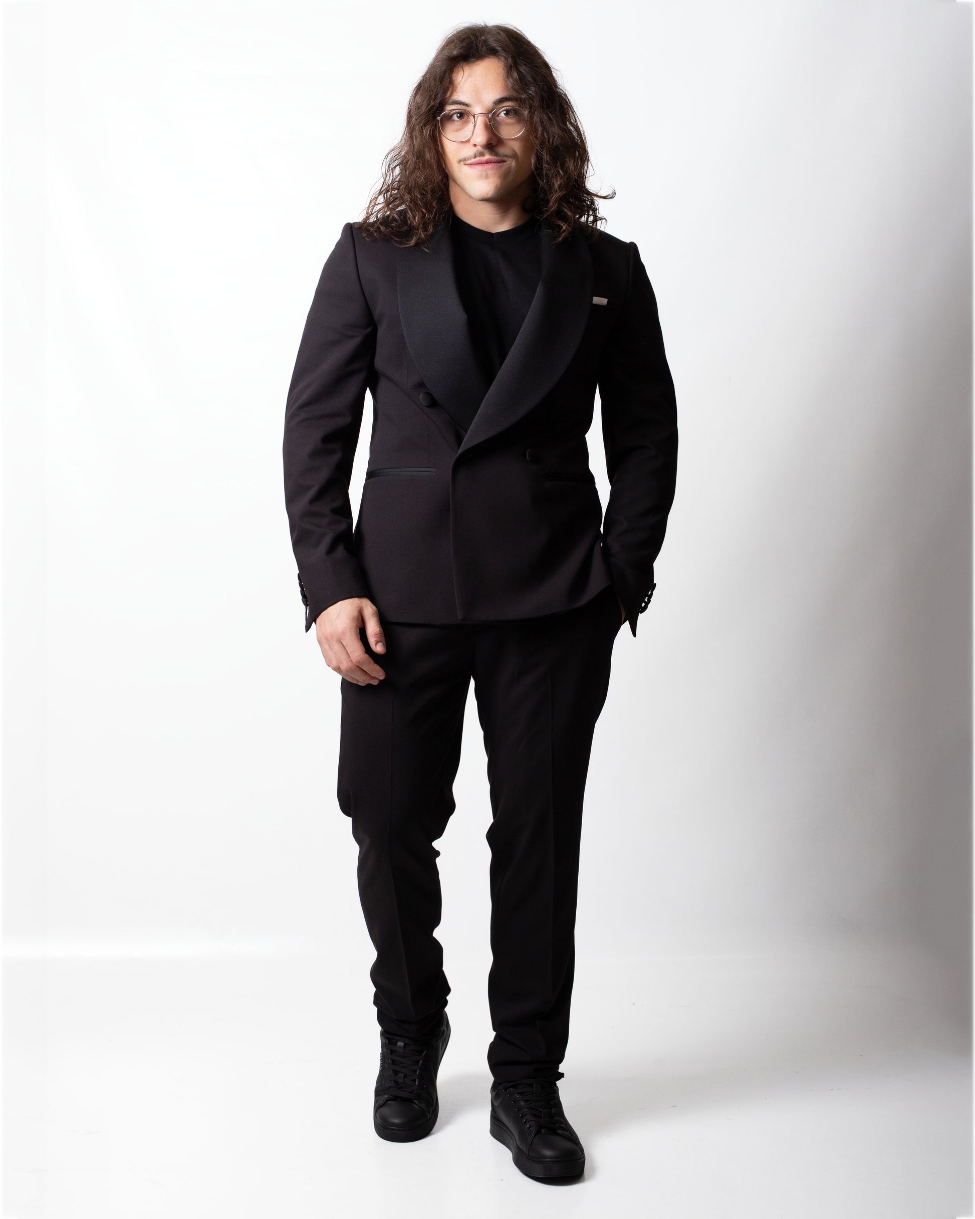 Abito Daniele Alessandrini nero, unica variante. Giacca con design