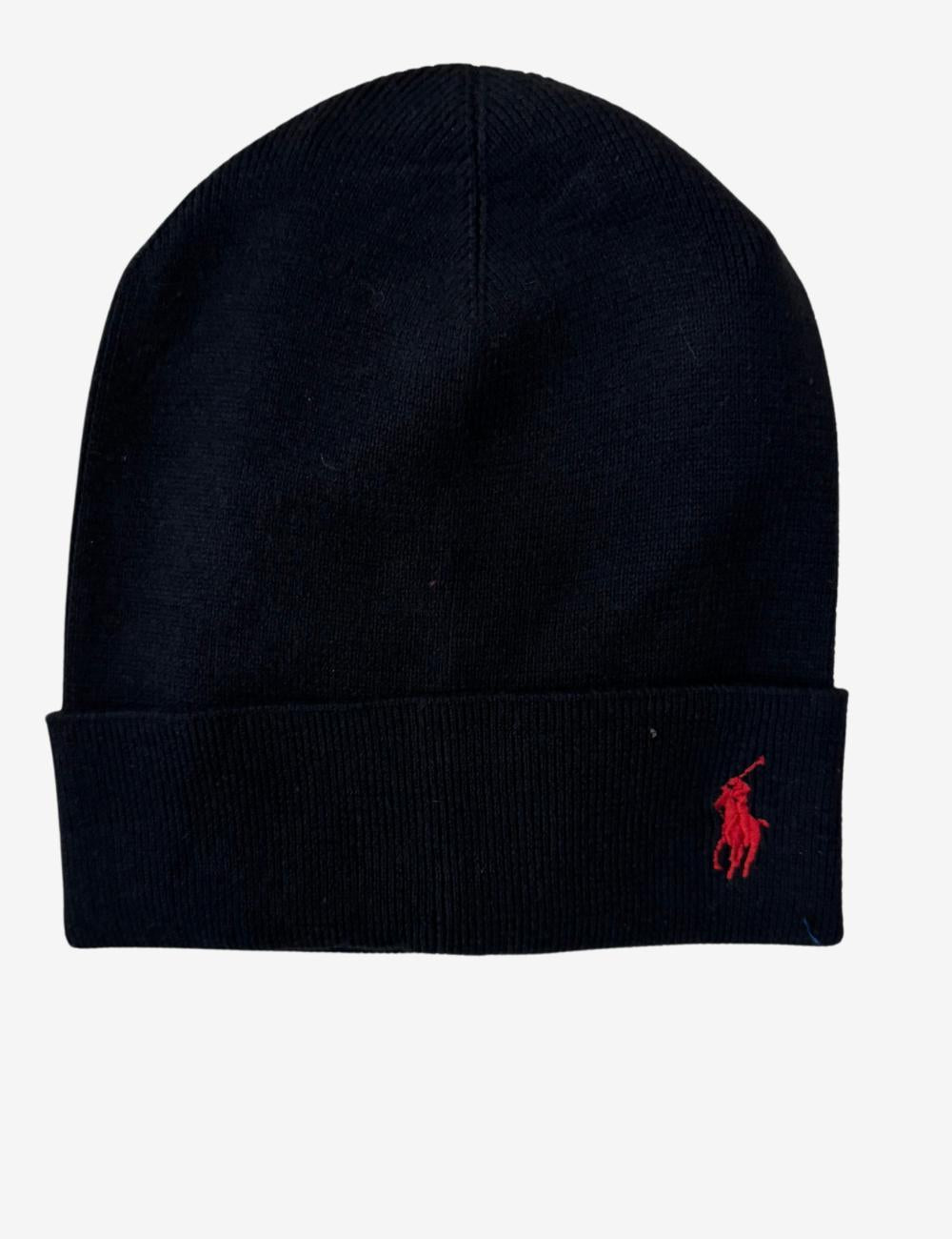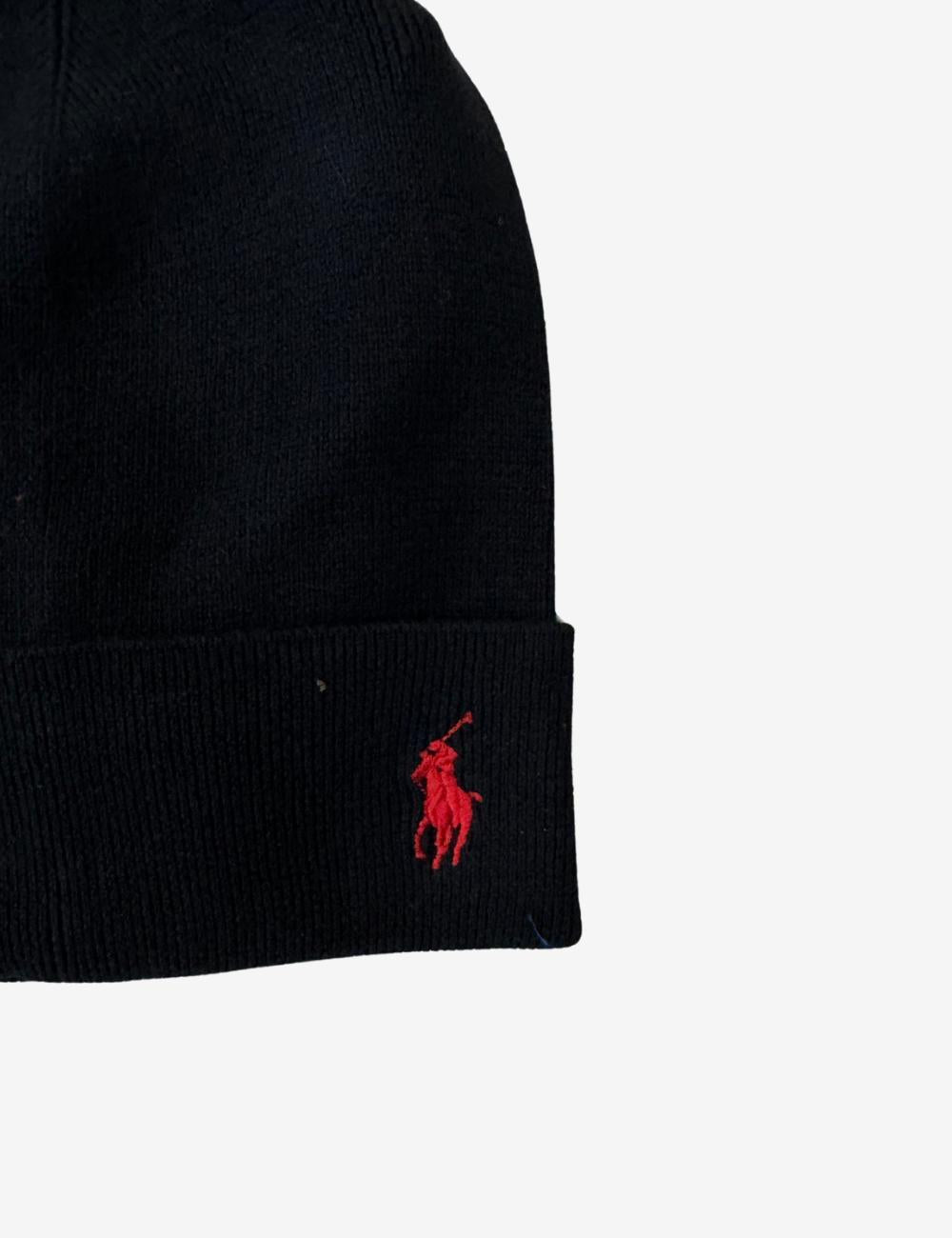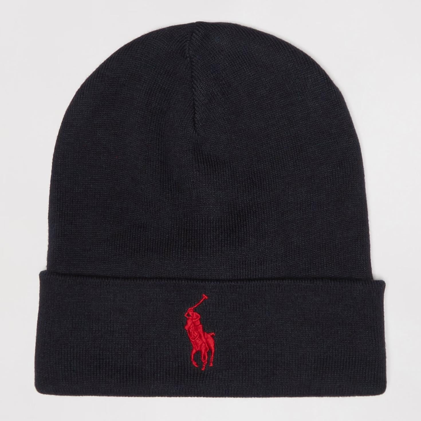 Berretto Polo Ralph Lauren nero, unica variante. Texture in cotone, risvolto ripiegato e logo pony ricamato frontalmente.