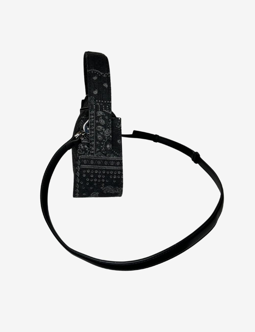 Borsa Karl Lagerfeld denim nero, unica variante. Tracolla removibile e regolabile, manico superiore, design in cotone, chiusura superiore con zip, dettagli argento, placca con logo K in metallo applicata sul davanti, grafica bandana stampata all-over. Internamente unico scomparto con tasca a soffietto, tasca con zip e placchetta logata.
