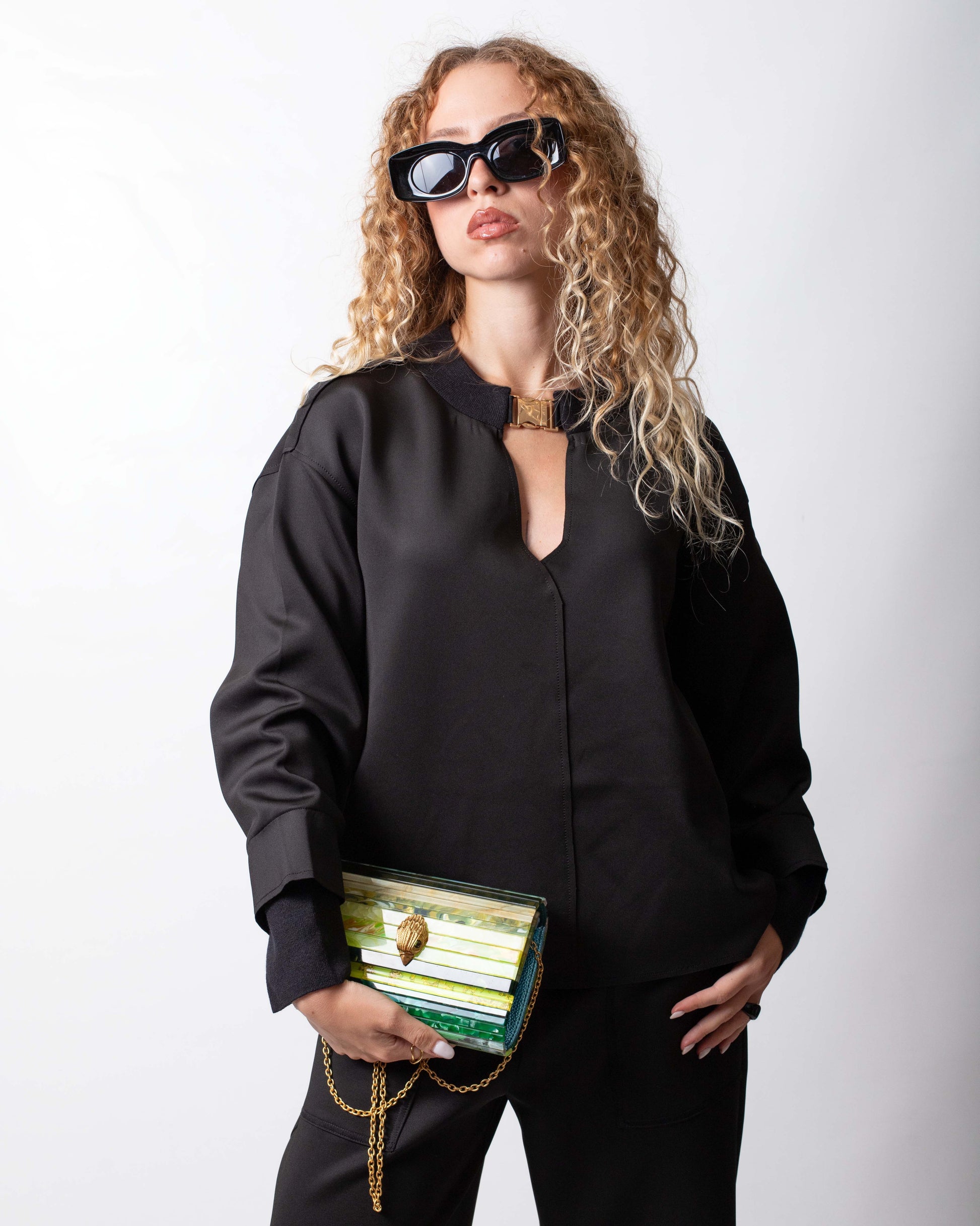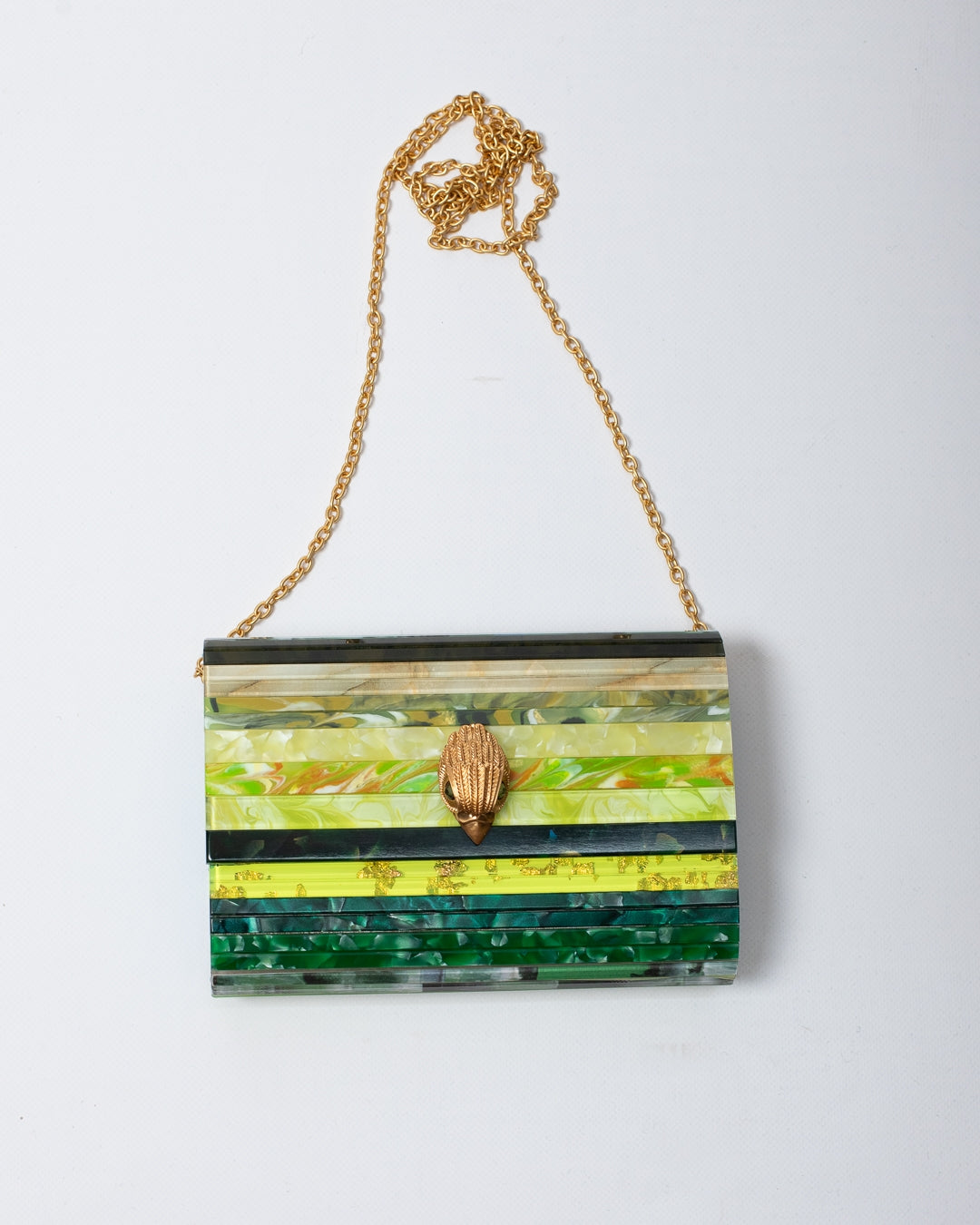 Borsa Kurt Geiger multicolor, unica variante. Design in plexiglas rivestito, tracolla removibile in catena, chiusura frontale con bottone, placca logata in metallo applicata sul retro e testa d'aquila in ottone applicata frontalmente con perline e cristalli. Internamente: unico scomparto e tasca a soffietto.