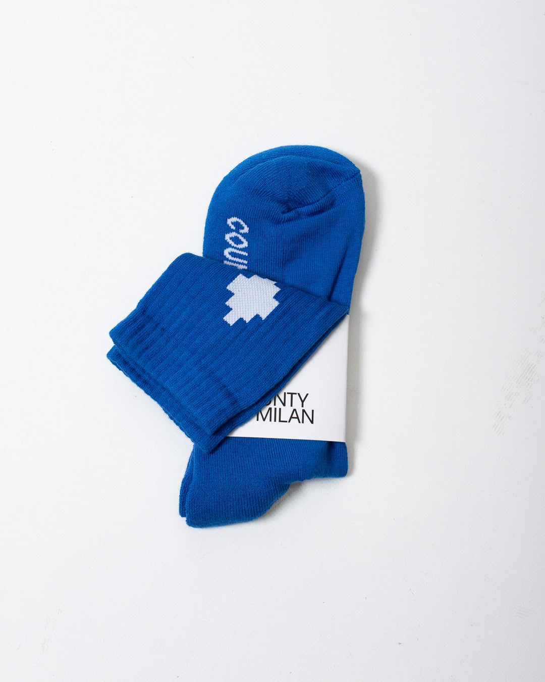 Calze Marcelo Burlon blu/bianche, unica variante. Design in spugna,