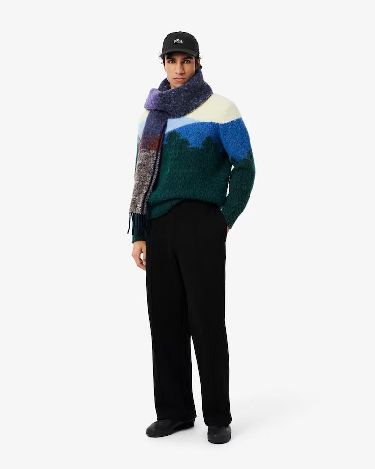 Cappello Lacoste nero, unica variante. Visiera, cinturino regolabile sul retro e logo coccodrillo multicolor ricamato frontalmente.