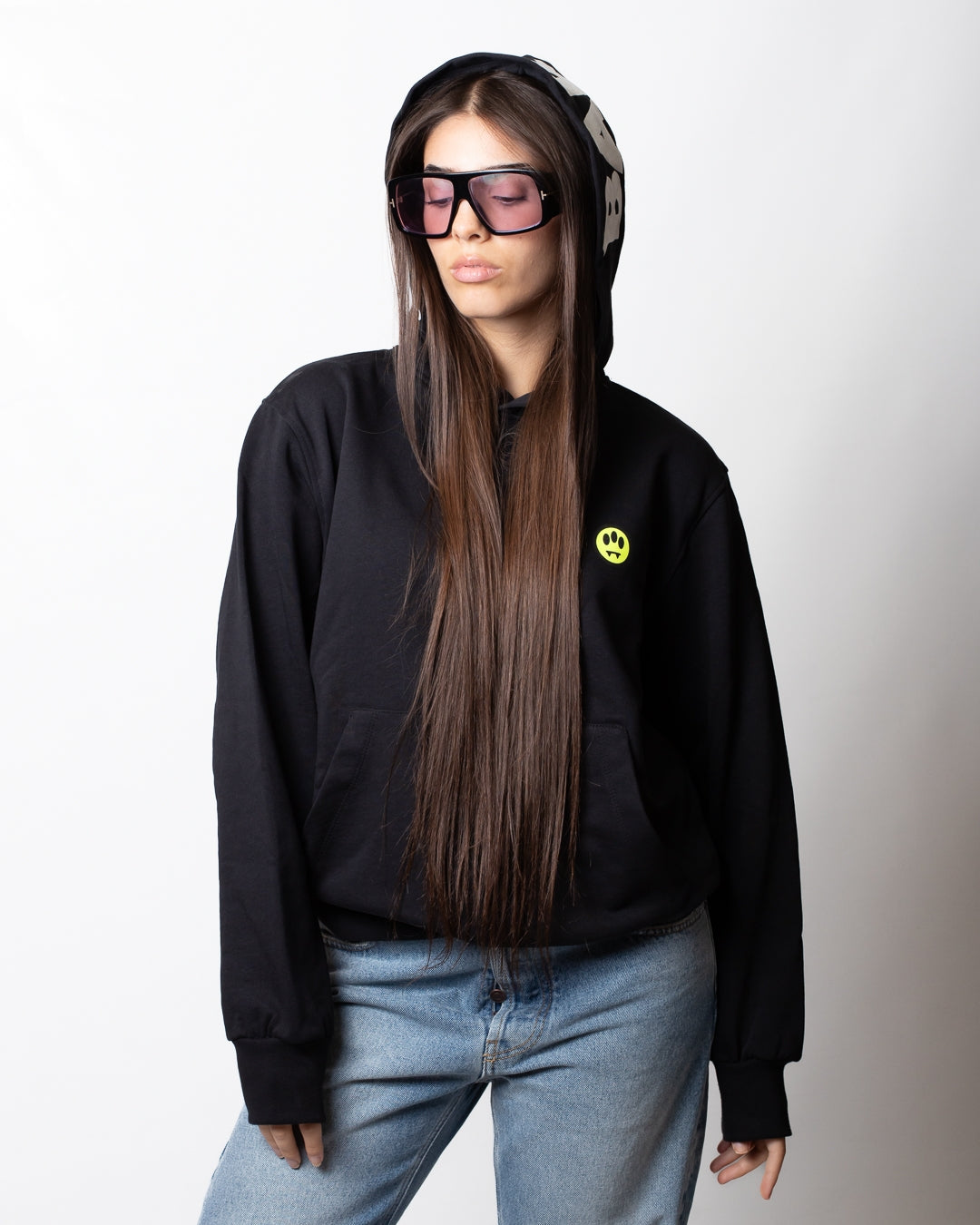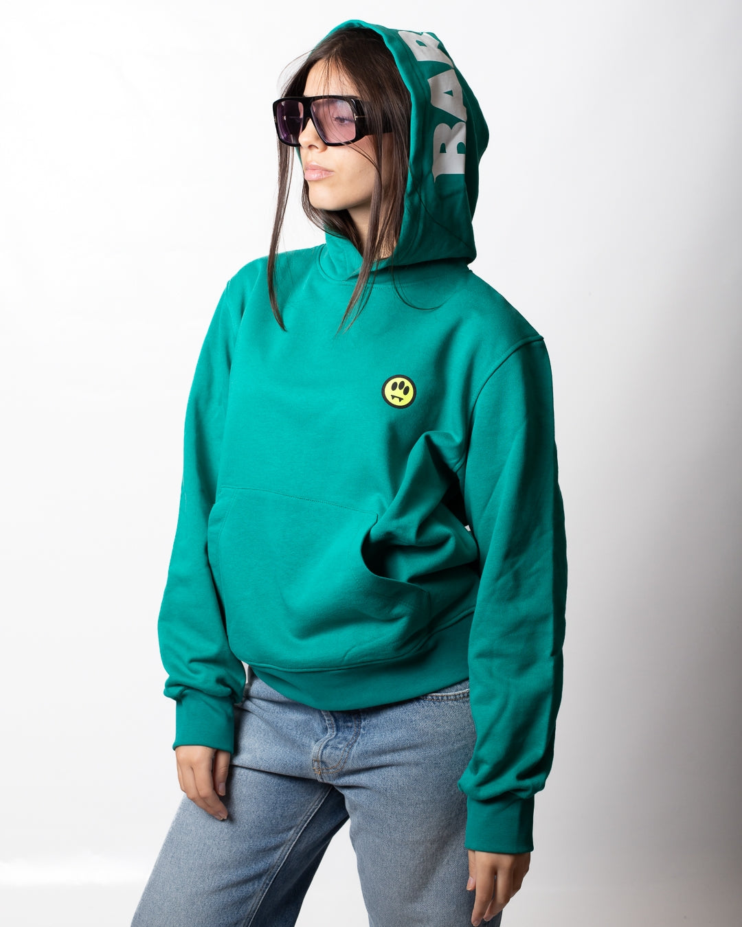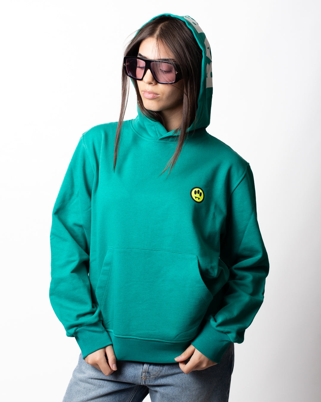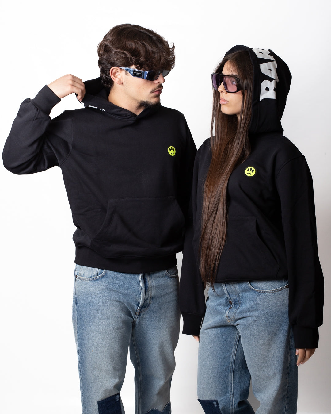 Felpa Barrow disponibile in due varianti. Cappuccio, maniche lunghe, fondo dritto, vestibilità rilassata, polsini e fondo in costina, tasca a marsupio frontale, logo smile stampato sul petto e logo Barrow stampato a contrasto sul cappuccio.