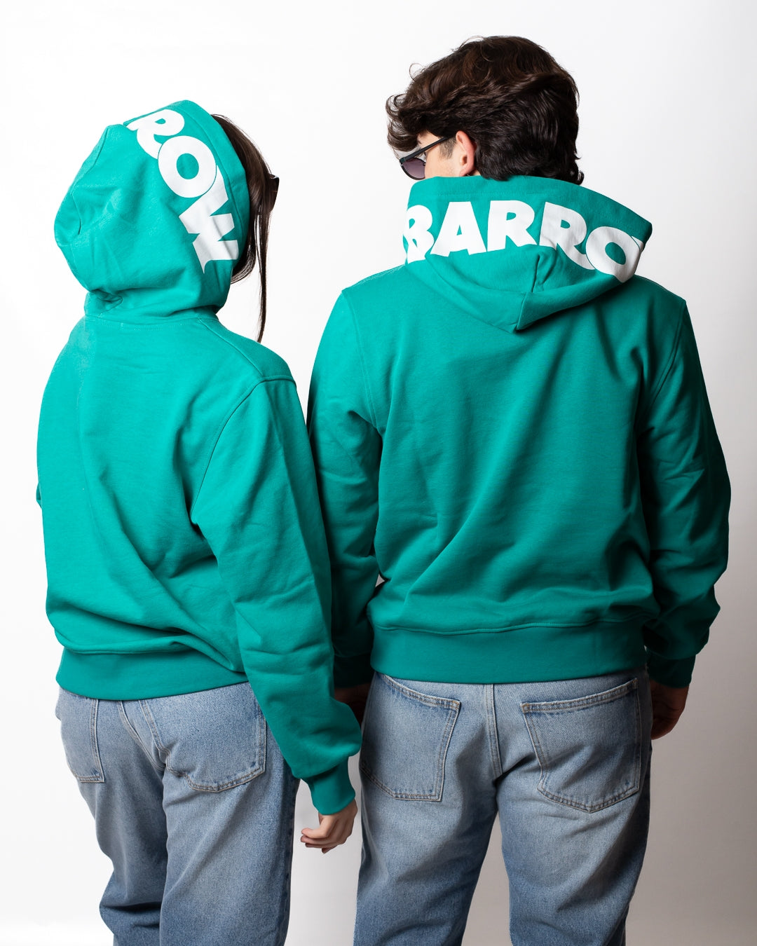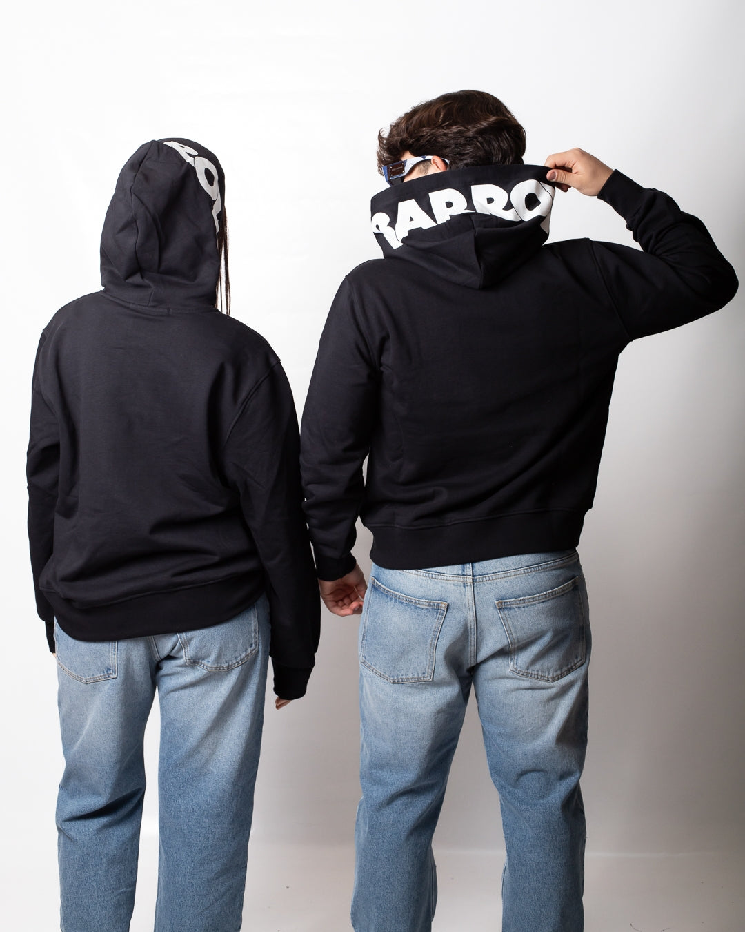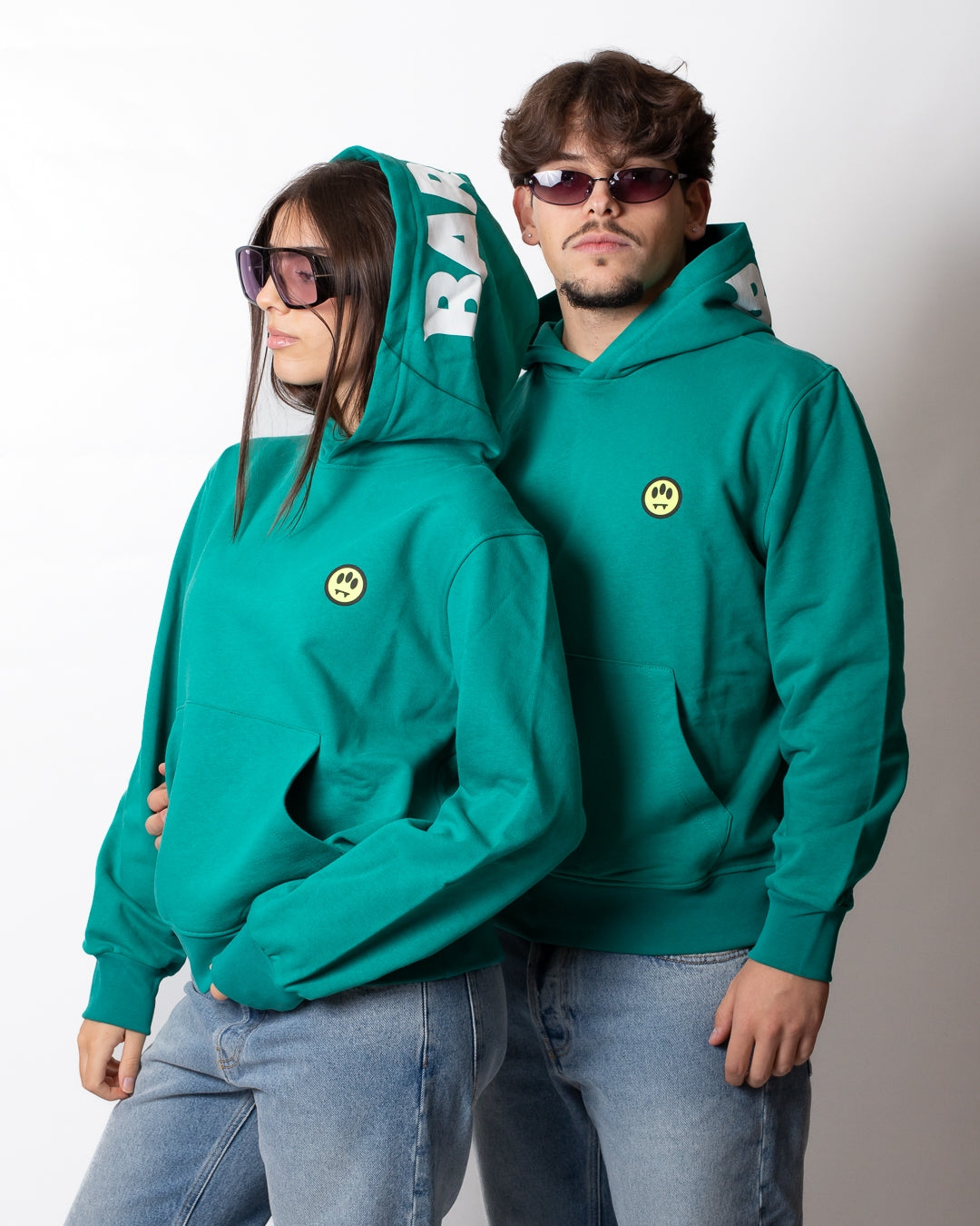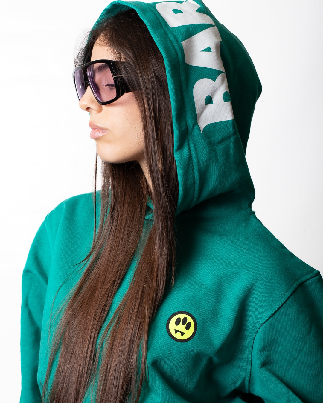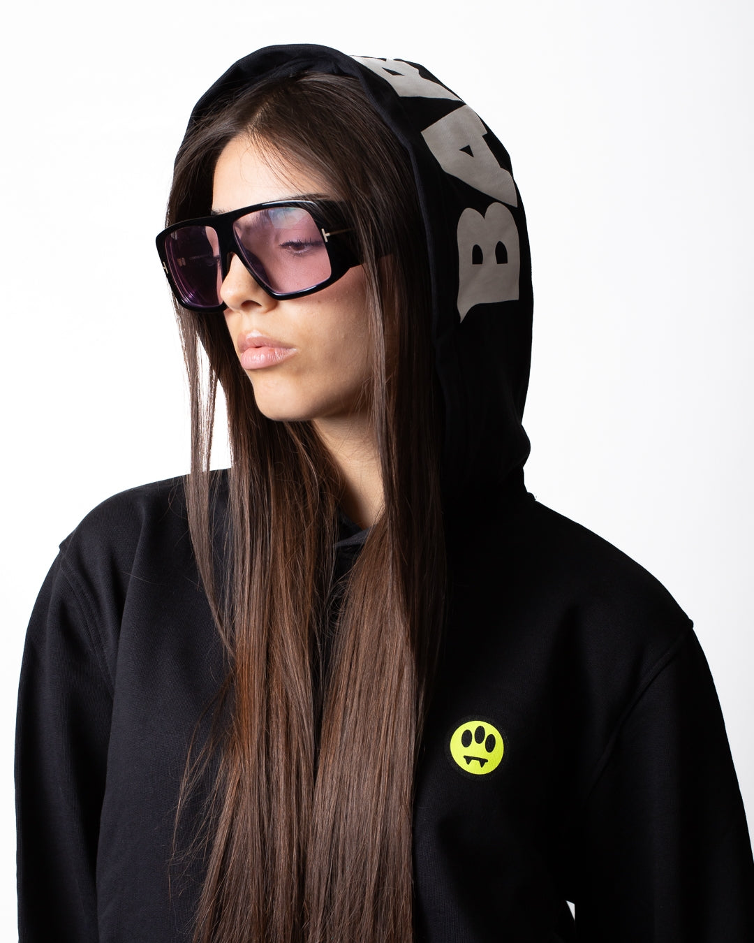 Felpa Barrow disponibile in due varianti. Cappuccio, maniche lunghe, fondo dritto, vestibilità rilassata, polsini e fondo in costina, tasca a marsupio frontale, logo smile stampato sul petto e logo Barrow stampato a contrasto sul cappuccio.