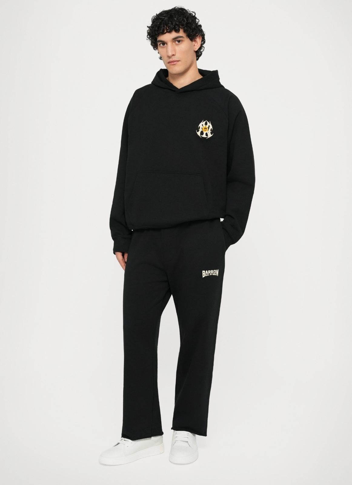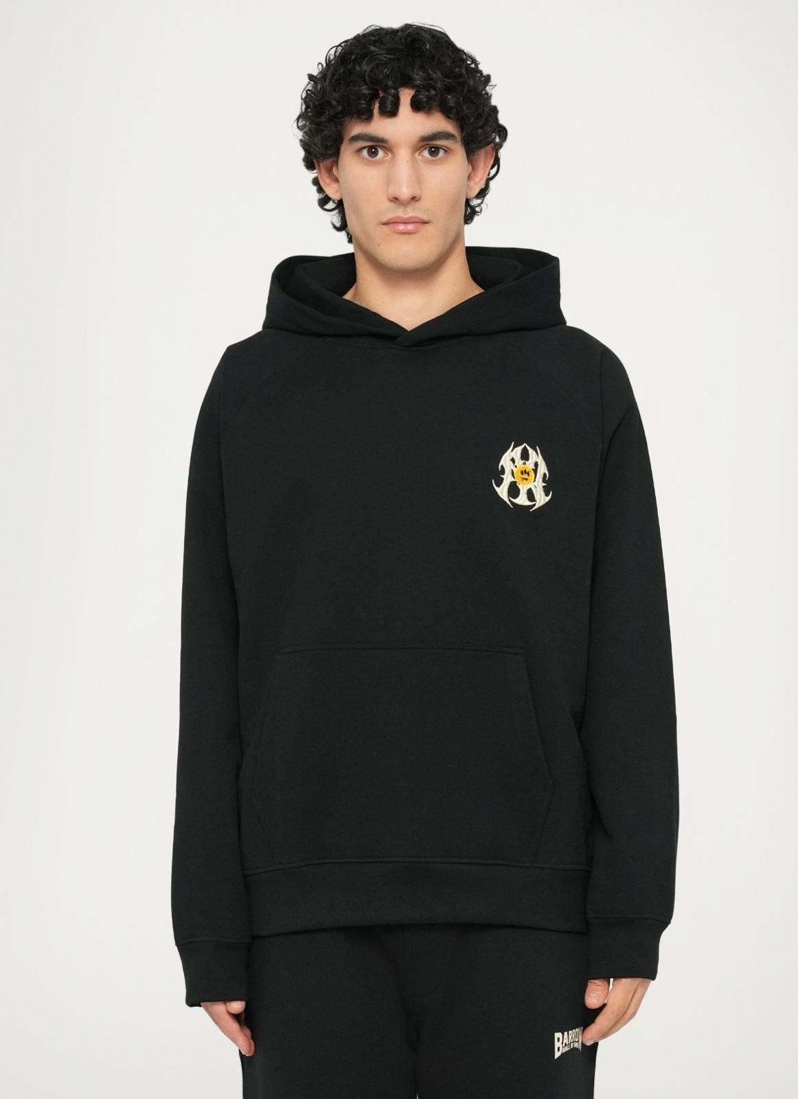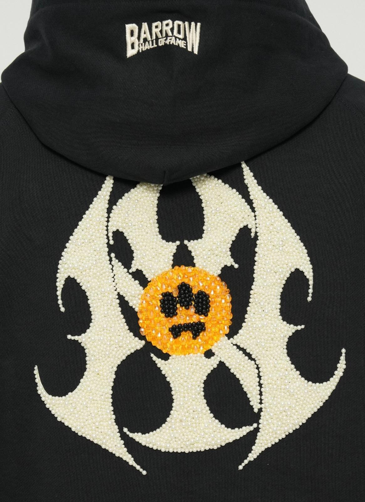 Felpa Barrow "Hall of fame" crema, unica variante. Cappuccio, maniche lunghe, vestibilità rilassata, polsini e fondo in costina, tasca marsupio applicata frontalmente, logo ricamato a contrasto sul petto e sul cappuccio e stampa "Hall of fame" con perline e strass applicata sulla schiena.