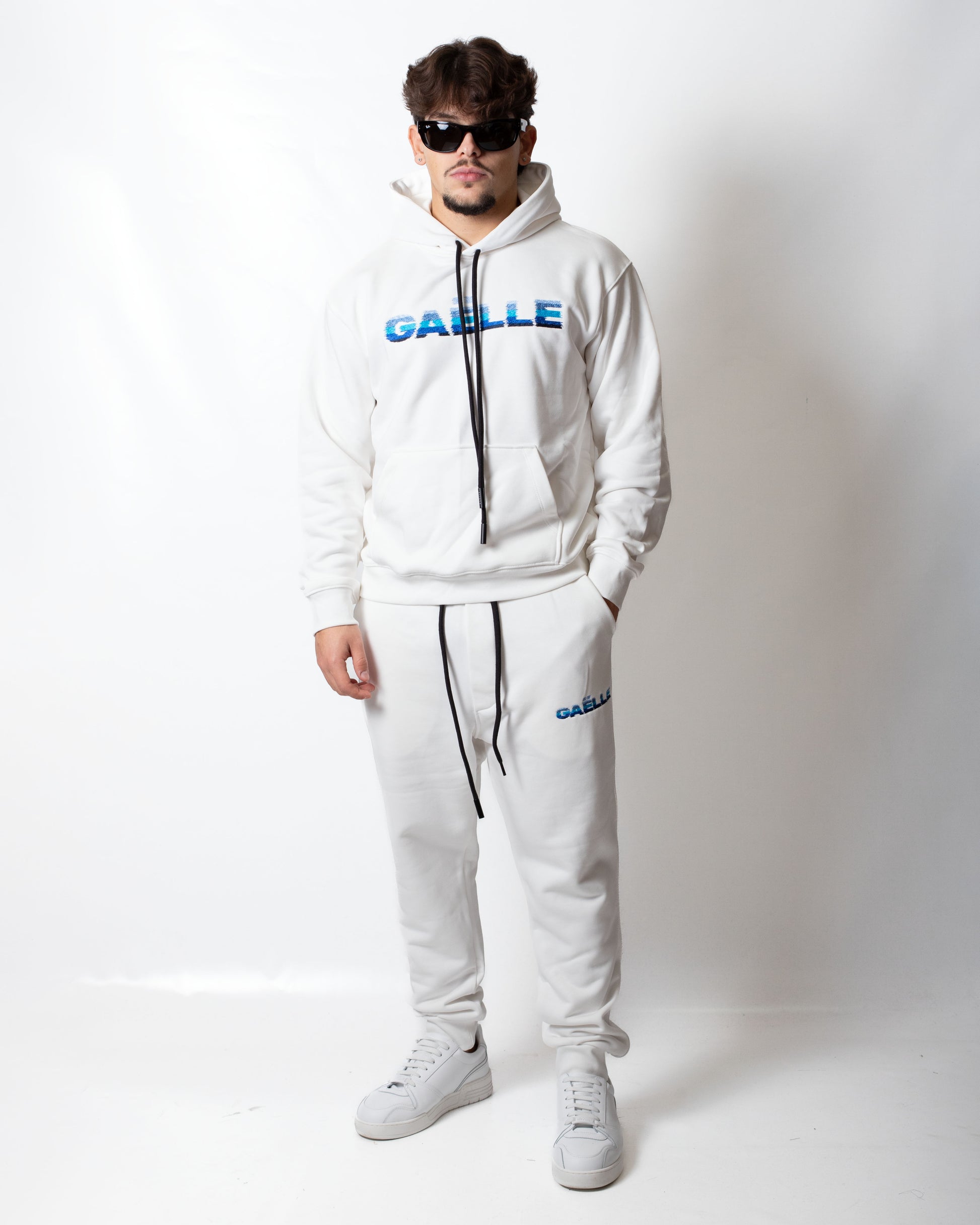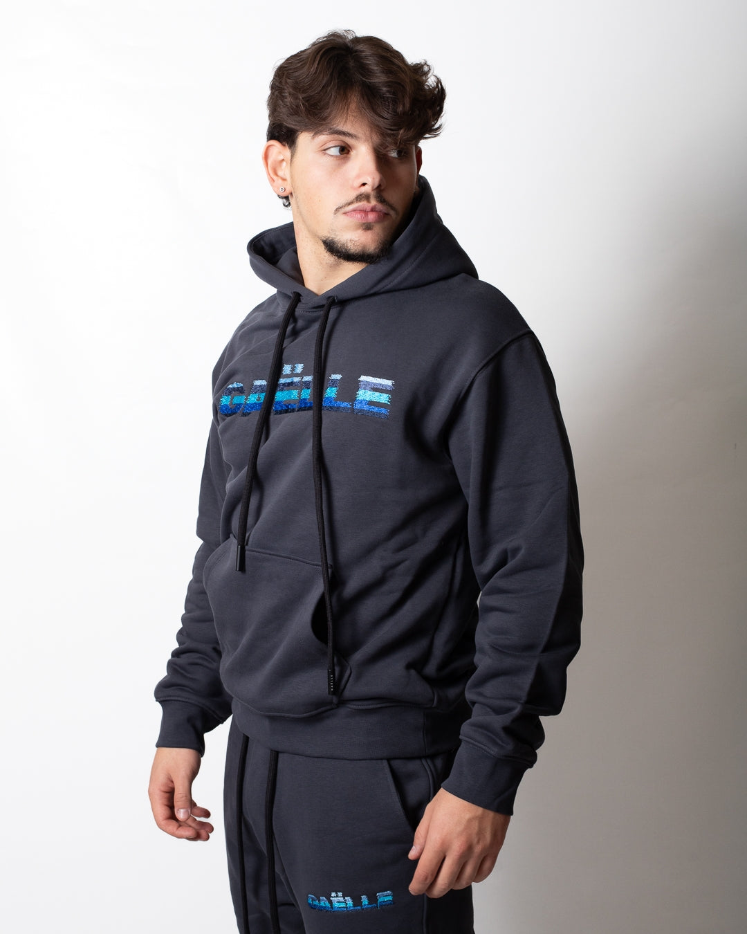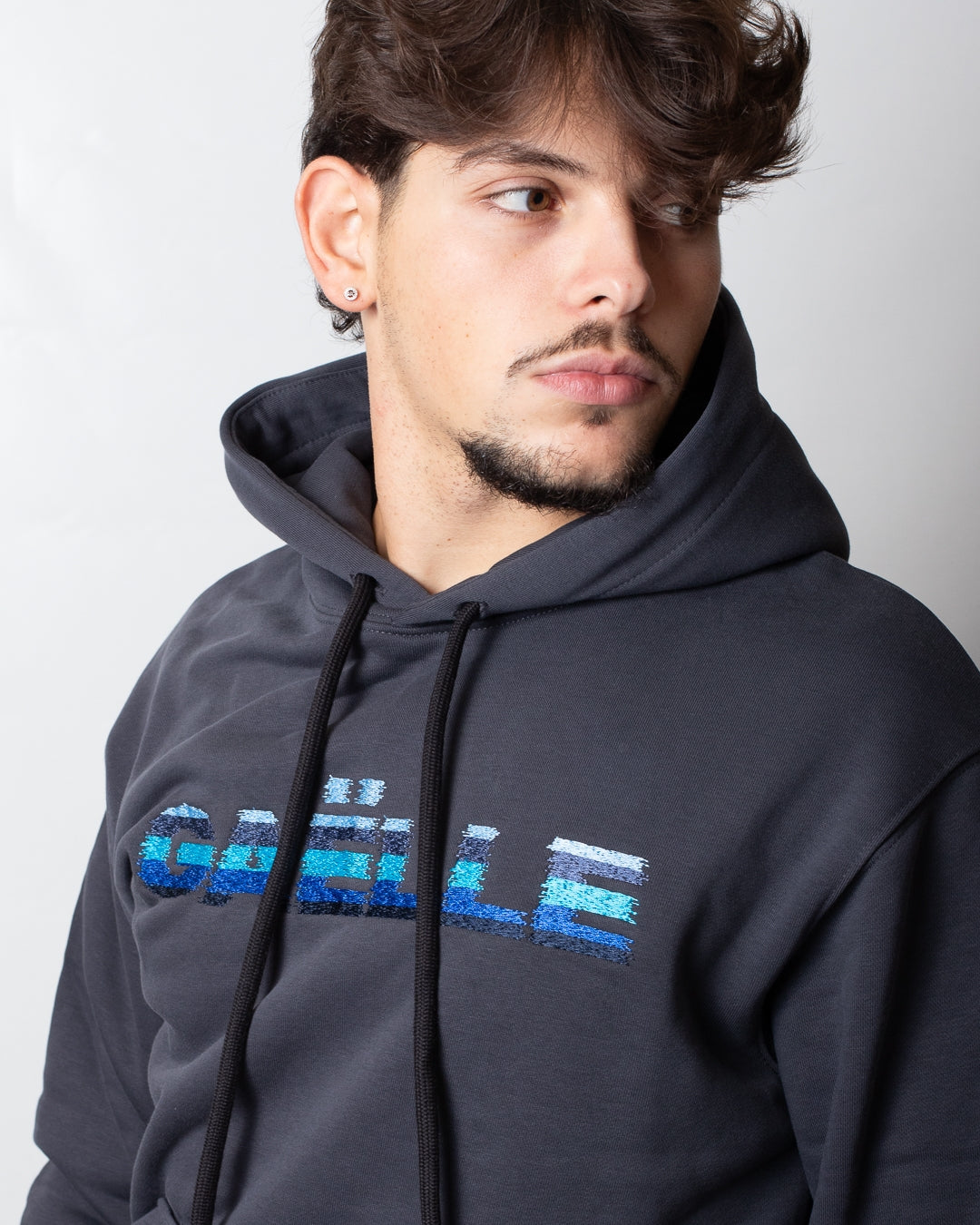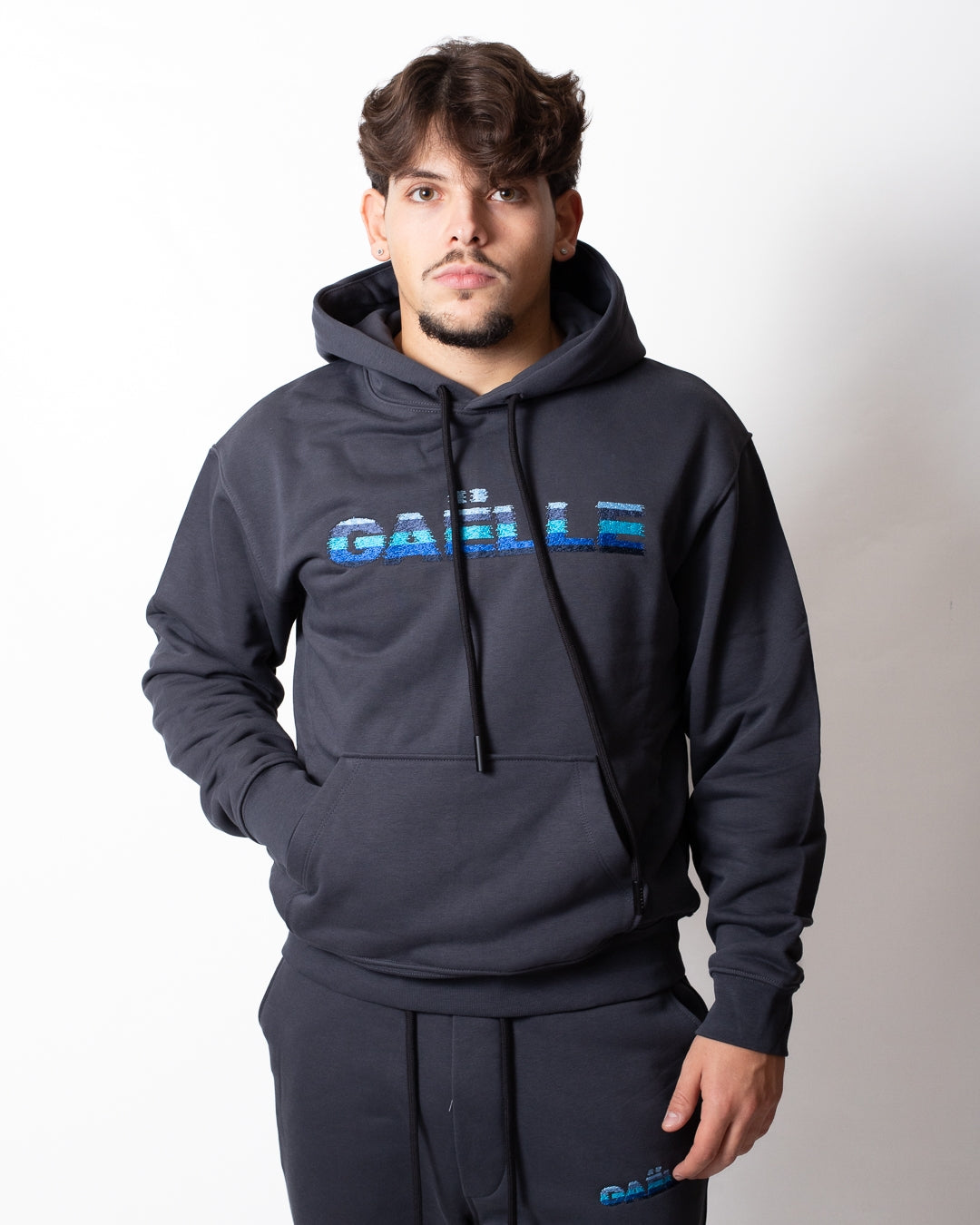 Felpa Gaelle disponibile in due varianti. Cappuccio con coulisse di regolazione, maniche lunghe, fondo e polsini in costina, vestibilità regular, tasca frontale a marsupio e logo ricamato applicato a contrasto frontalmente.