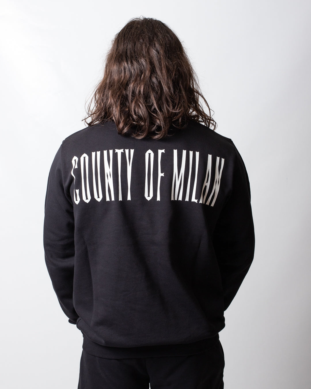 Felpa Marcelo Burlon nera, unica variante. Girocollo, maniche lunghe, polsini, collo e fondo in costina, vestibilità regular e stampe logate applicate sul davanti e sulla schiena.