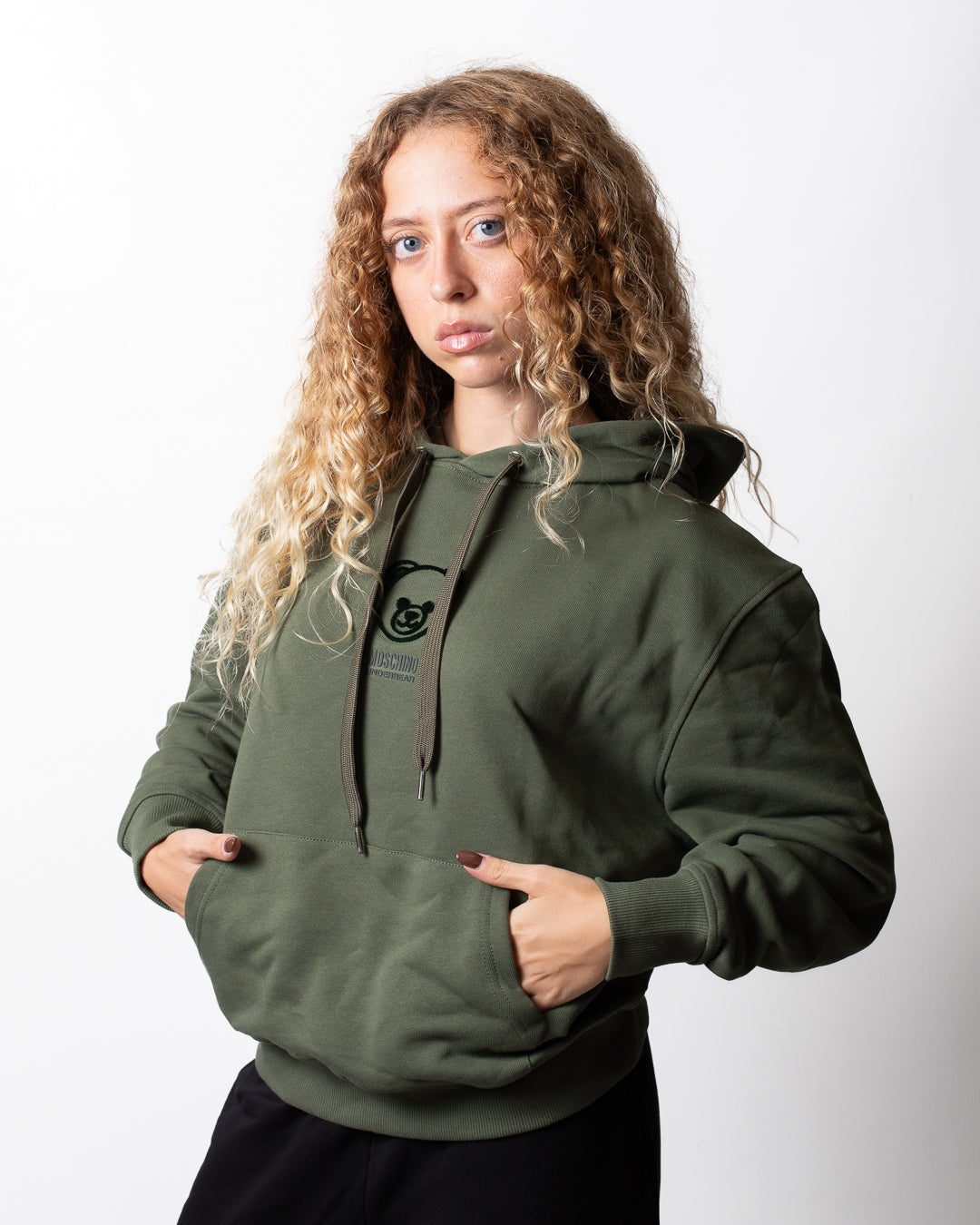 Felpa Moschino Underwear verde, unica variante. Cappuccio con coulisse