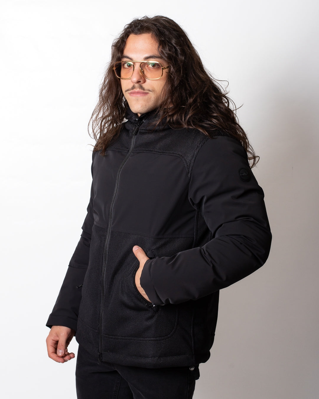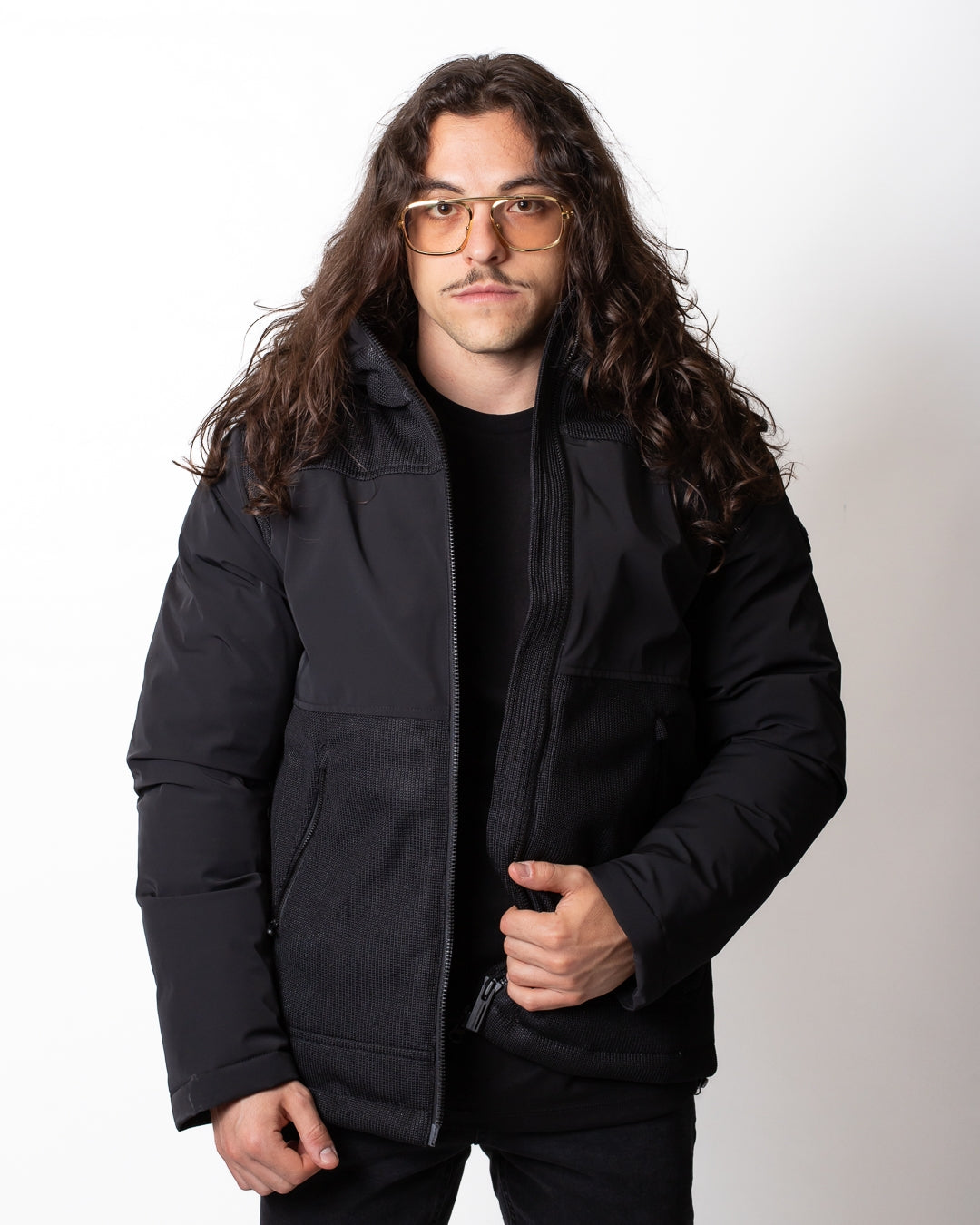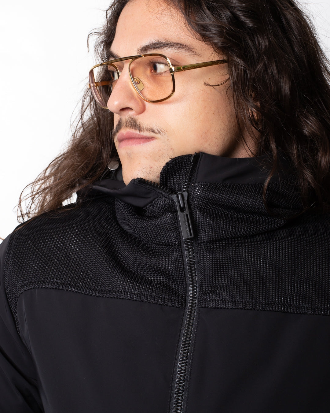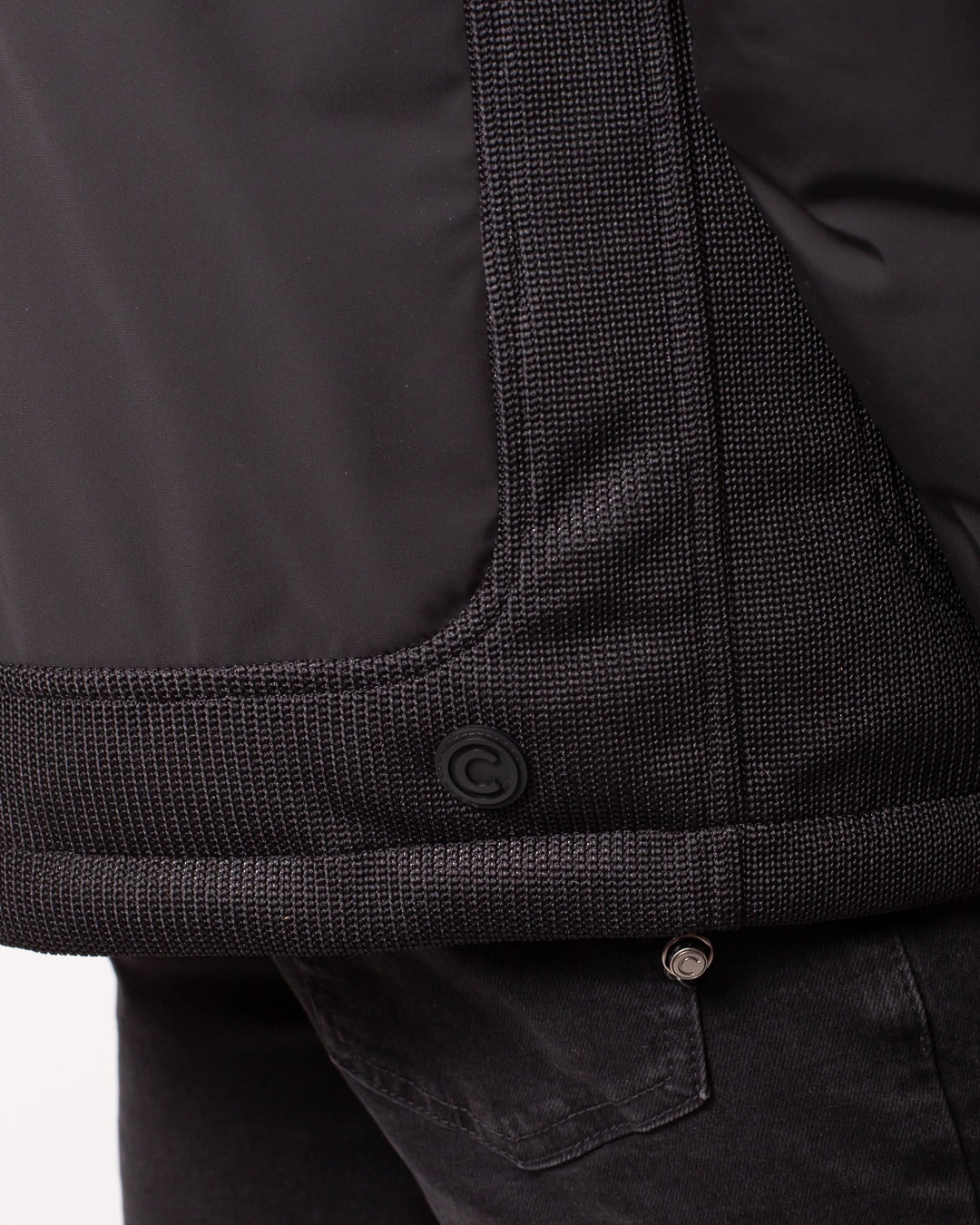 Giubbotto Colmar nero, unica variante. Cappuccio con coulisse di regolazione, maniche lunghe, chiusura frontale con zip, tasche laterali con zip, coulisse applicate sul fondo, dettagli in rete applicati frontalmente e sulla schiena e logo Colmar in silicone applicato tono su tono sulla manica sinistra e sul retro.