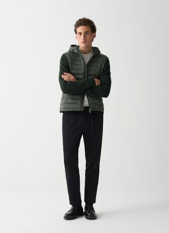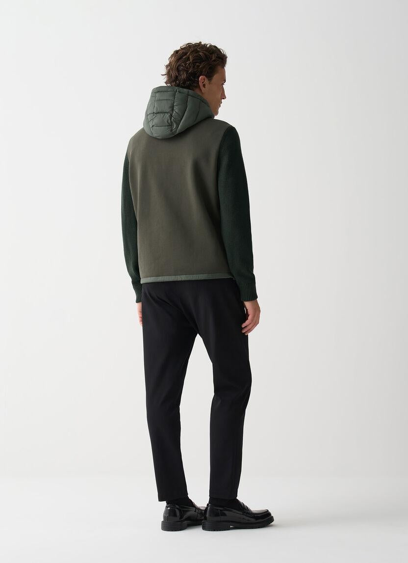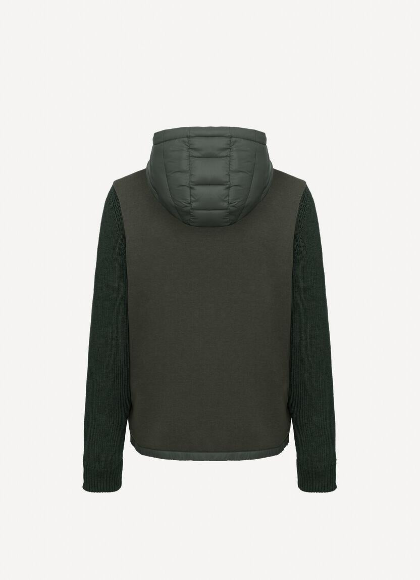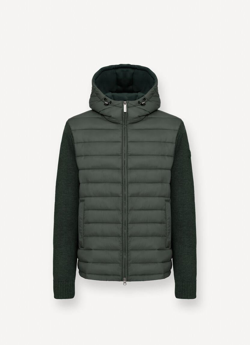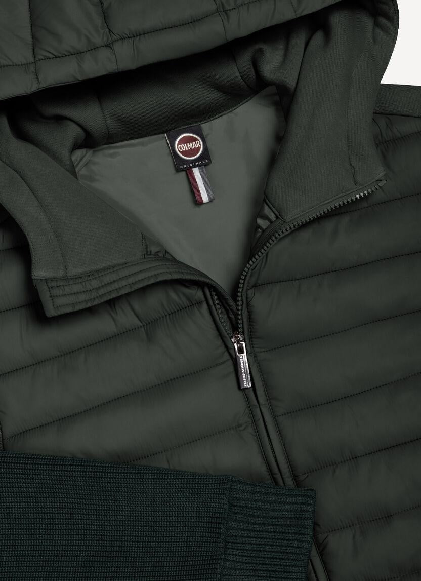 Giubbotto Colmar verde, unica variante. Cappuccio con coulisse di regolazione, chiusura frontale con zip, maniche lunghe in maglia, tasche laterali con zip, coulisse di regolazione sul fondo, schiena in maglia e logo in silicone applicato tono su tono sulla manica.