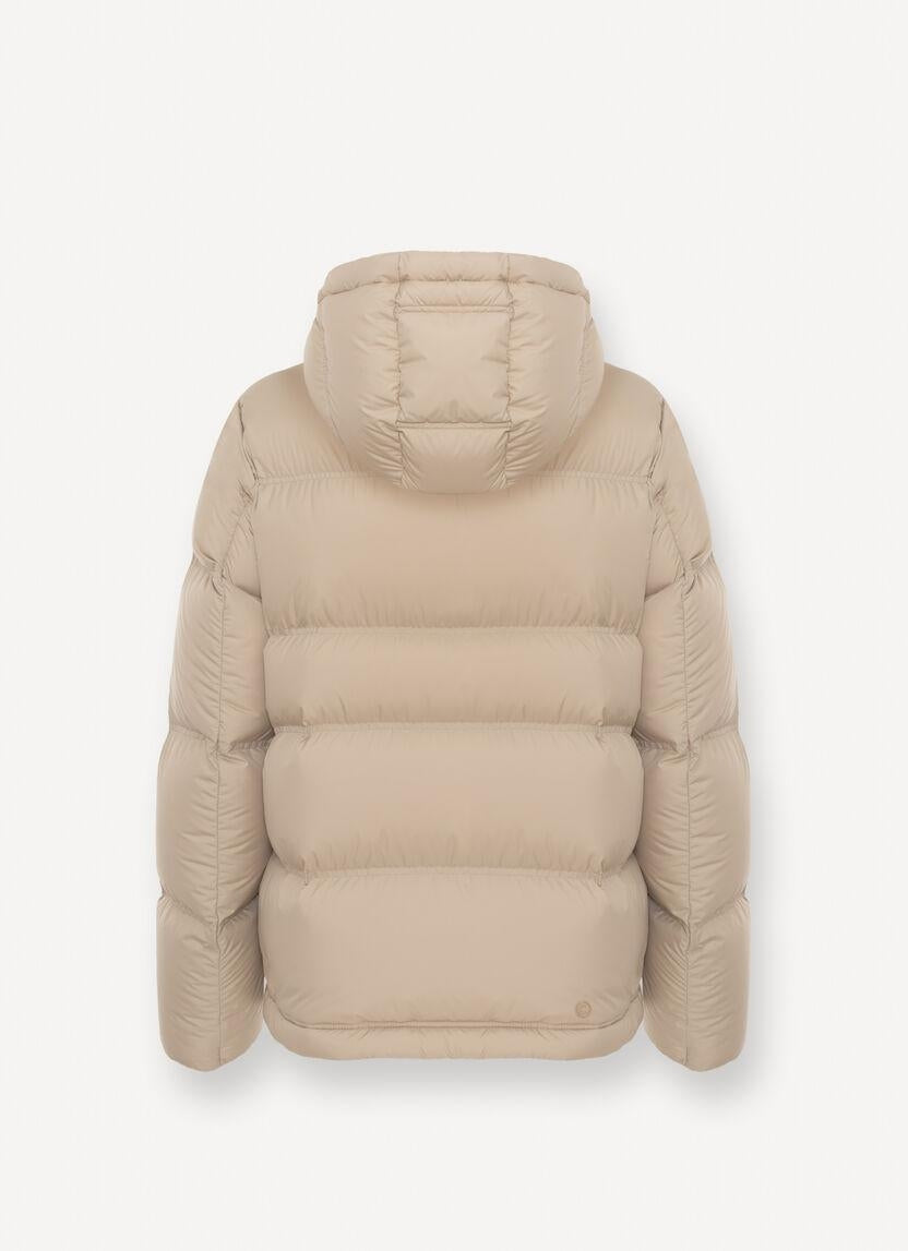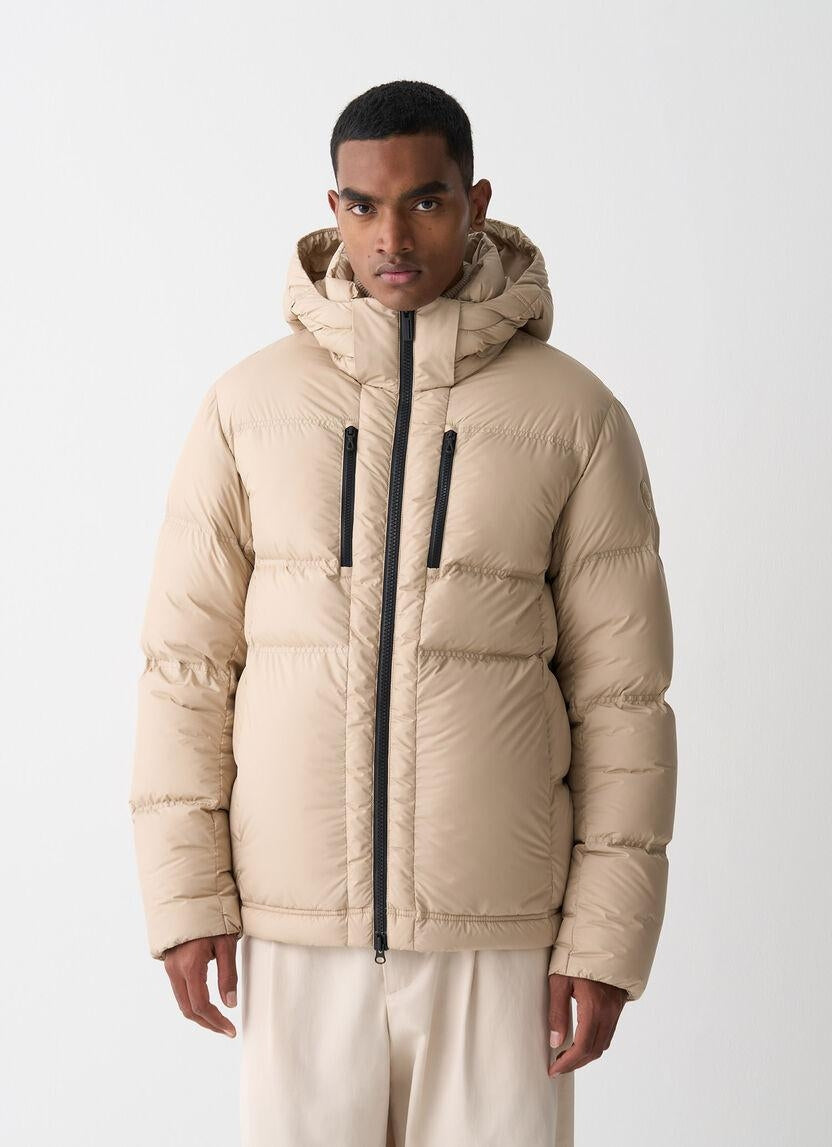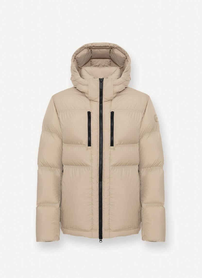 Giubbotto Colmar beige, unica variante. Cappuccio con coulisse di regolazione, chiusura frontale con zip, maniche lunghe, tasche laterali con zip, tasche sul petto con zip, coulisse di regolazione sul fondo e logo in silicone applicato tono su tono sulla manica.