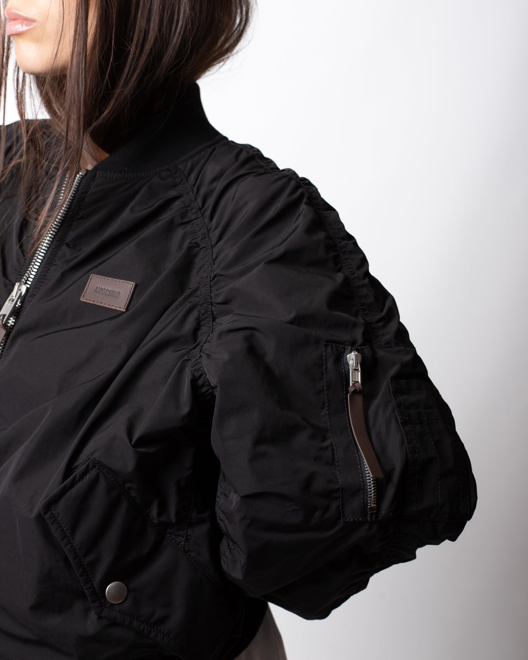 Giubbotto Moschino modello bomber con patch logata