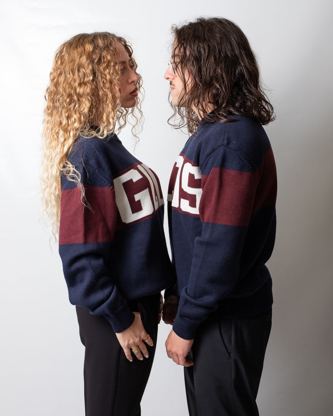 Maglia GCDS disponibile in due varianti. Vestibilità classic, texture in misto lana, girocollo, maniche lunghe, collo, polsini e fondo in costina e intarsio logato "Band Logo" applicato frontalmente.