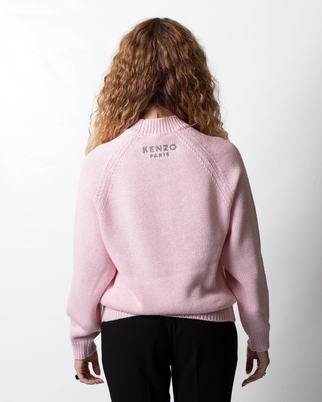 Maglia Kenzo Paris rosa, unica variante. Girocollo, texture in misto lana, maniche lunghe, collo, polsini e fondo in costina e logo Boke Flower applicato frontalmente.