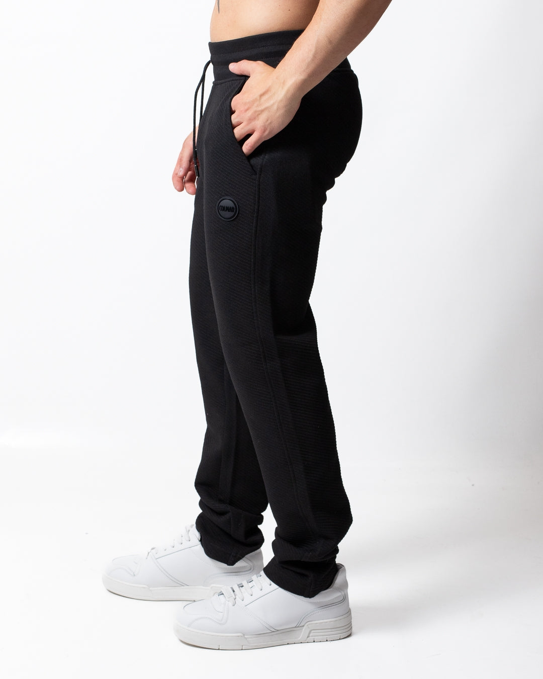Pantalone Colmar disponibile in due varianti. Design in felpa, texture in costina, vita elasticizzata con coulisse di regolazione, tasche laterali, tasca sul retro e logo in silicone applicato sul davanti tono su tono.