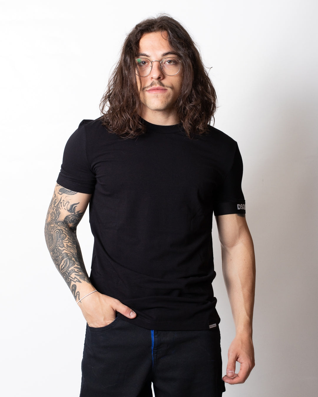T-Shirt Dsquared2. realizzata in cotone stretch presenta logo "DSQUARED2" applicato jacquard sulla banda elastica della manica. Manica corta, orlo dritto e scollo rotondo.
