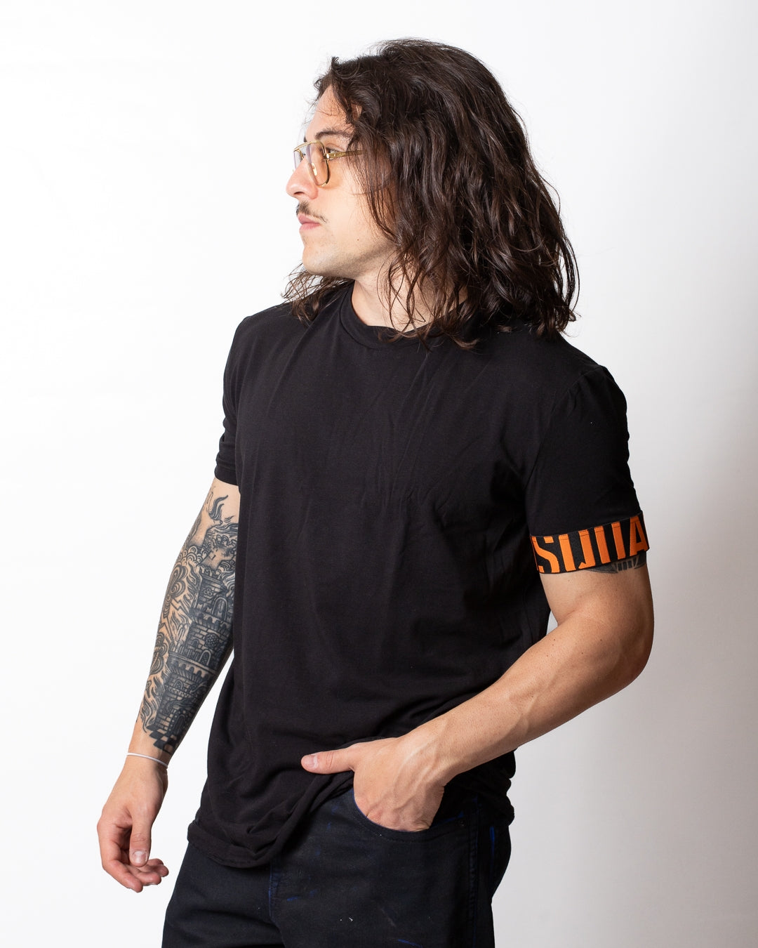 T-Shirt Dsquared2 disponibile in due varianti. Girocollo, maniche corte, fondo dritto, vestibilità slim, logo stampato a contrasto sul retro e fascia logata applicata sulla manica.