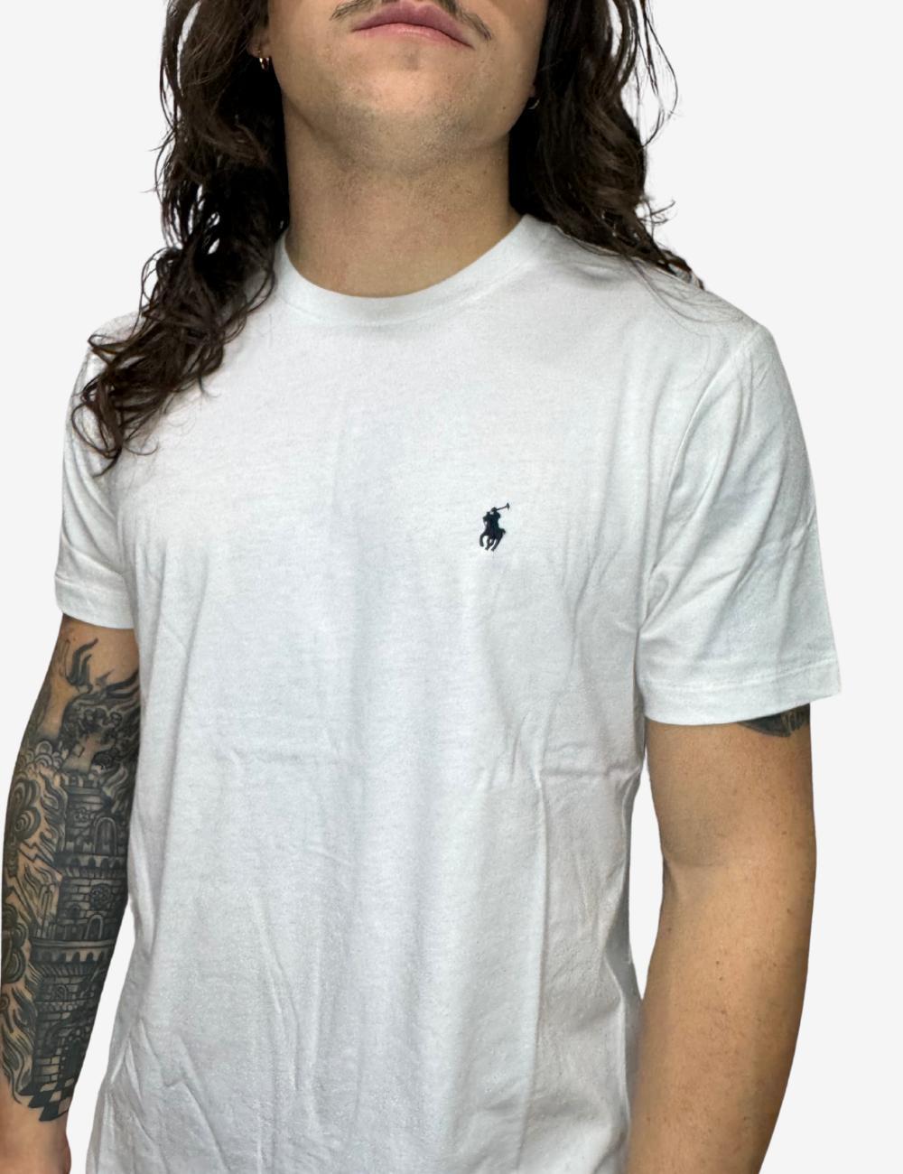 T-Shirt Polo Ralph Lauren bianca, unica variante. Design basic, girocollo con logo minimal ricamato sul petto.