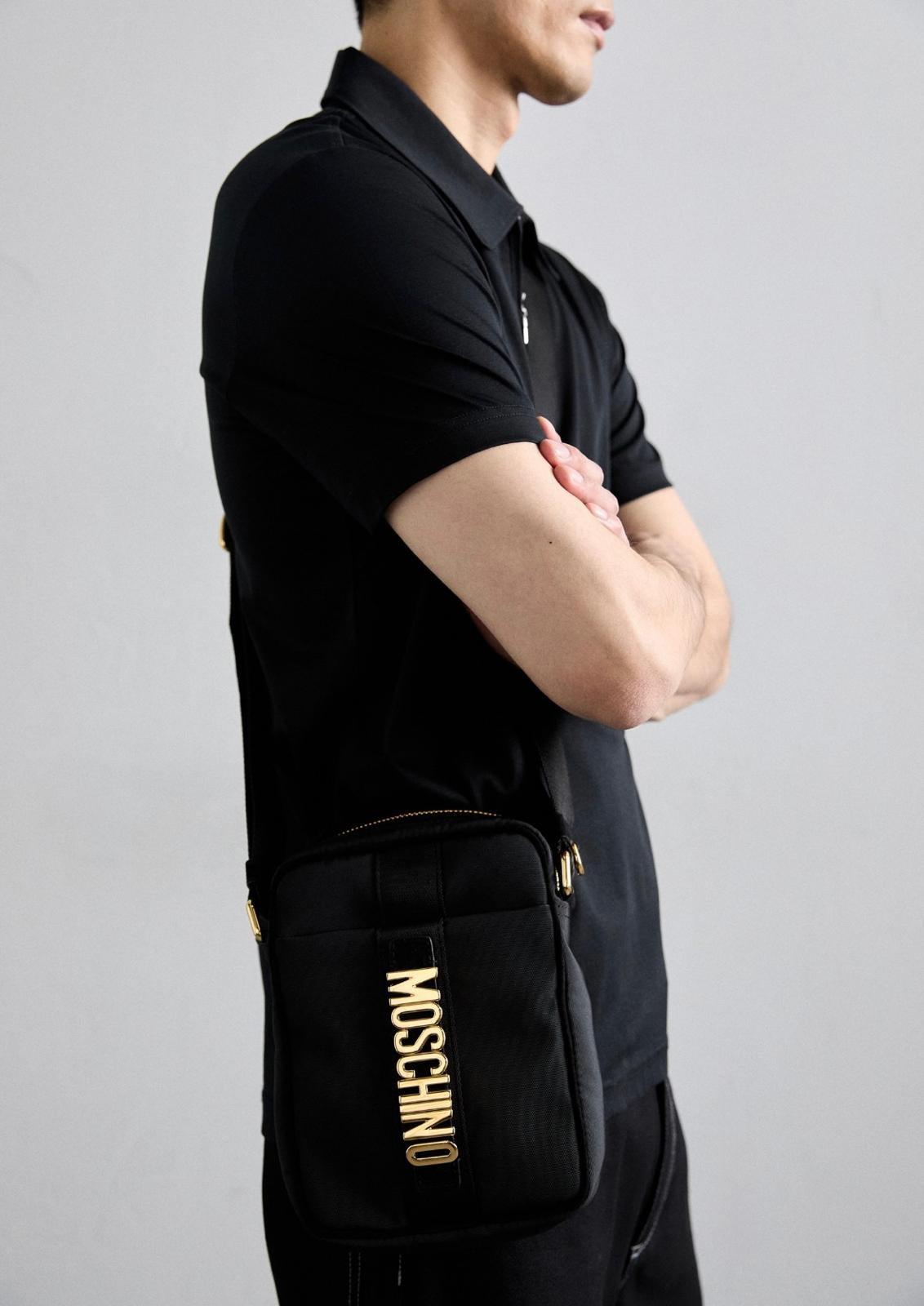 Tracolla Moschino in tessuto con placca in metallo uomo