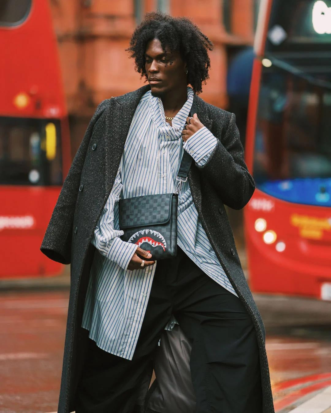 Tracolla Sprayground nero, rappresenta la grafica "SCRIBBLE SHARK MESSENGER BAG". Realizzato in eco-pelle resistente e durevole presenta unico scompartimento con chiusura con patta magnetica e tasca posteriore nascosta con zip, tutte le tasche sono dotate di cerniera logata SPRAYGROUND. Tracolla regolabile e rimovibile per taglie personalizzate.