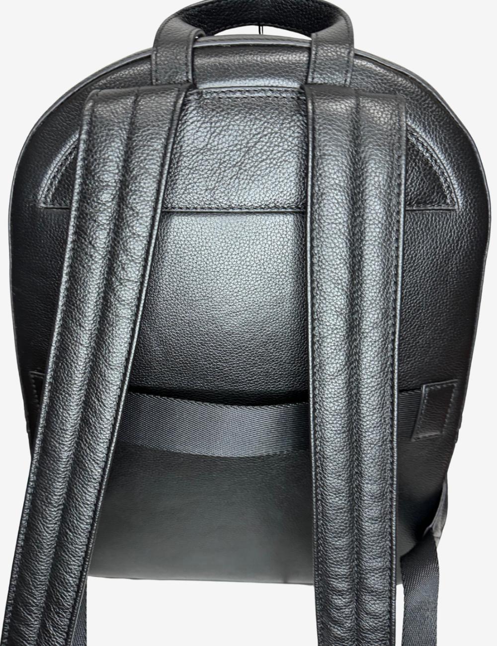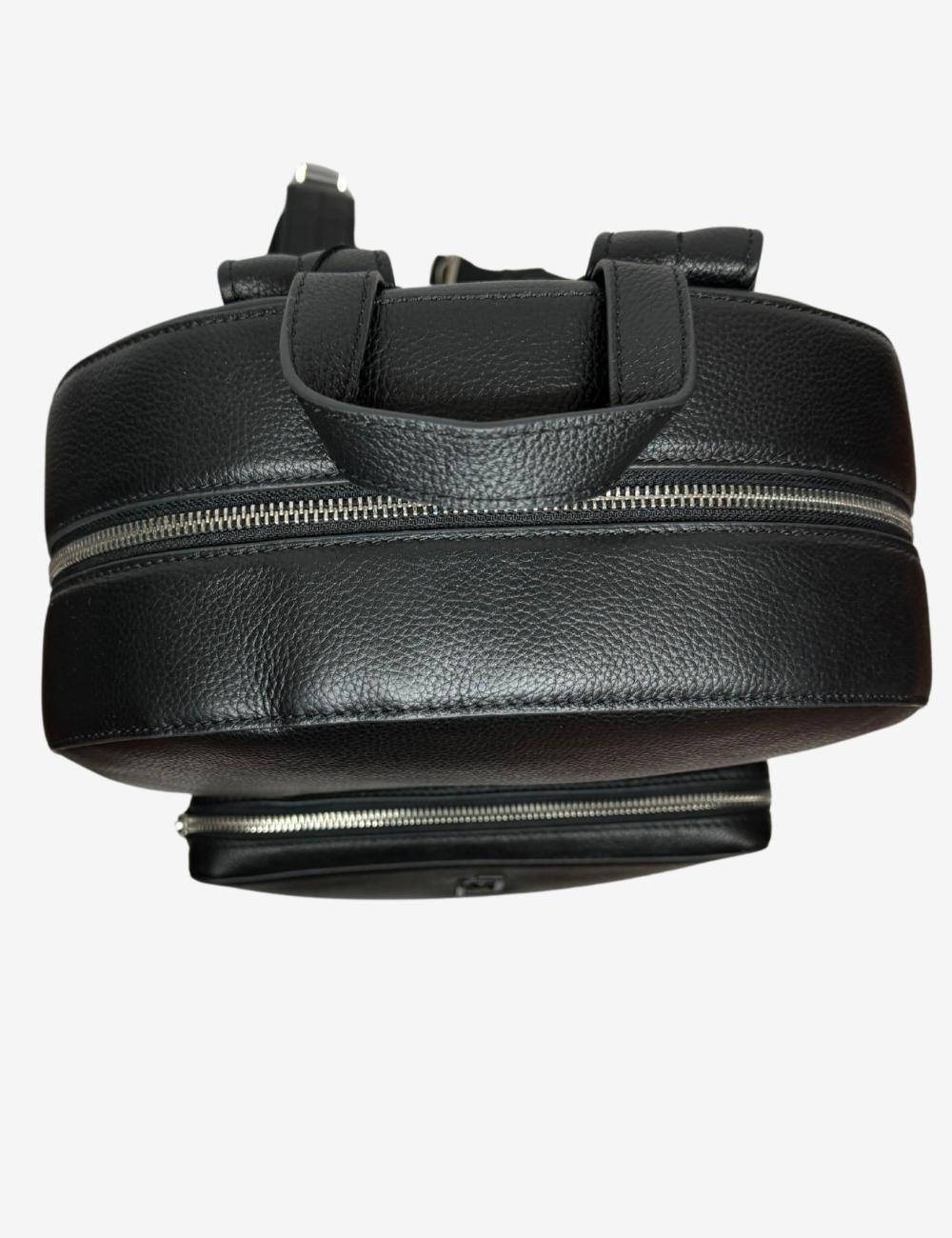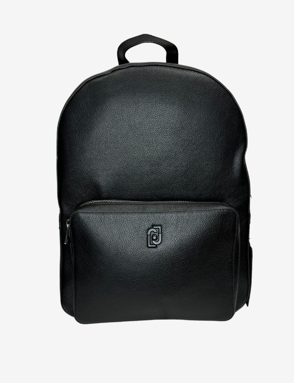 Zaino Liu Jo nero, unica variante. Chiusura superiore con zip, tasca applicata frontalmente con zip, bretelle posteriori regolabili, manico superiore, porta documento applicato lateralmente e logo in metallo applicato frontalmente. Internamente: doppio scomparto e tasche a soffietto.