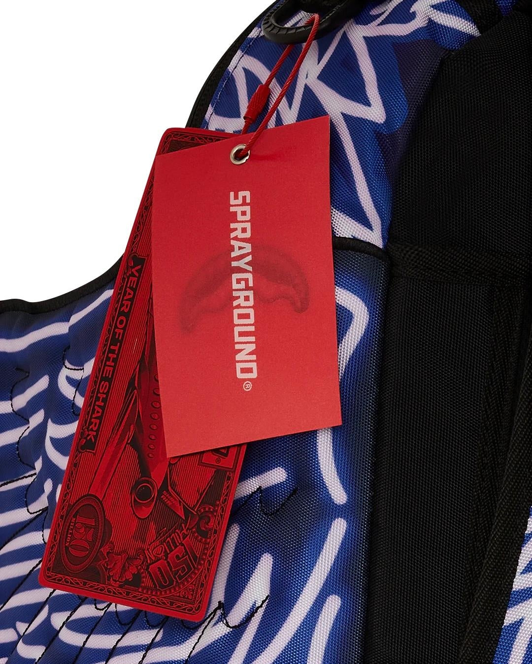 Zaino Sprayground viola, rappresenta la grafica "Neon wing party dlx-wings backpack" caratterizzato dalla fuori uscite delle ali. Realizzato in tessuto resistente e durevole presenta tasca frontale con zip logata, tasche laterali e tasca superiore separata portaocchiali in velour con cerniera logata. Sul retro scomparto con imbottitura ergonomica in rete, tasca nascosta con zip,  cinghie regolabili per ogni tipo di taglia e manicotto posteriore per collegare il bagaglio a mano. Manico superiore con placca "Sprayground Authentic" in metallo.
